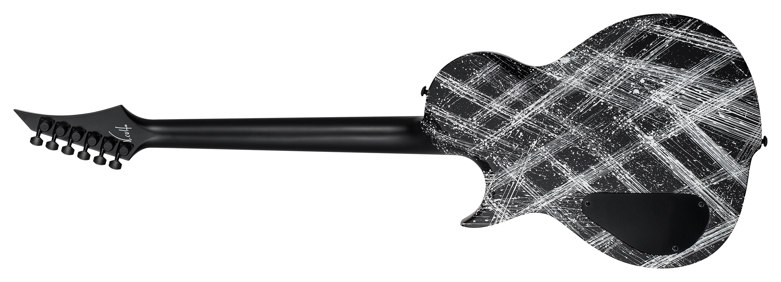 This Type G1.6NC Cosmos -signature guitar for Nocturno Culto of Darkthrone- will set you apart from everybody else. With its distinctively arch top body shape and 6 inline pointy headstock this modern looking Type G single cutaway guitar has a remarkable, precise and professional feature set making it the ultimate instrument suitable for both stage and studio work. Loaded with a Tonepros locking TOM bridge, It also features a powerful and defined Seymour Duncan Black Winter bridge pickup. It has a set-thru neck/body joint design with 24.75” scale, an mahogany body with flame maple veneer, a fast, thin, comfortable mahogany neck, an ebony fingerboard with 24 super-jumbo stainless steel frets and Luminlay ‘glow in the dark’ side dots for easy stage use. Loaded with Solar 18:1 locking tuners , Graphtech nut and full access neck, this guitar is available in white splatter over carbon black finish.