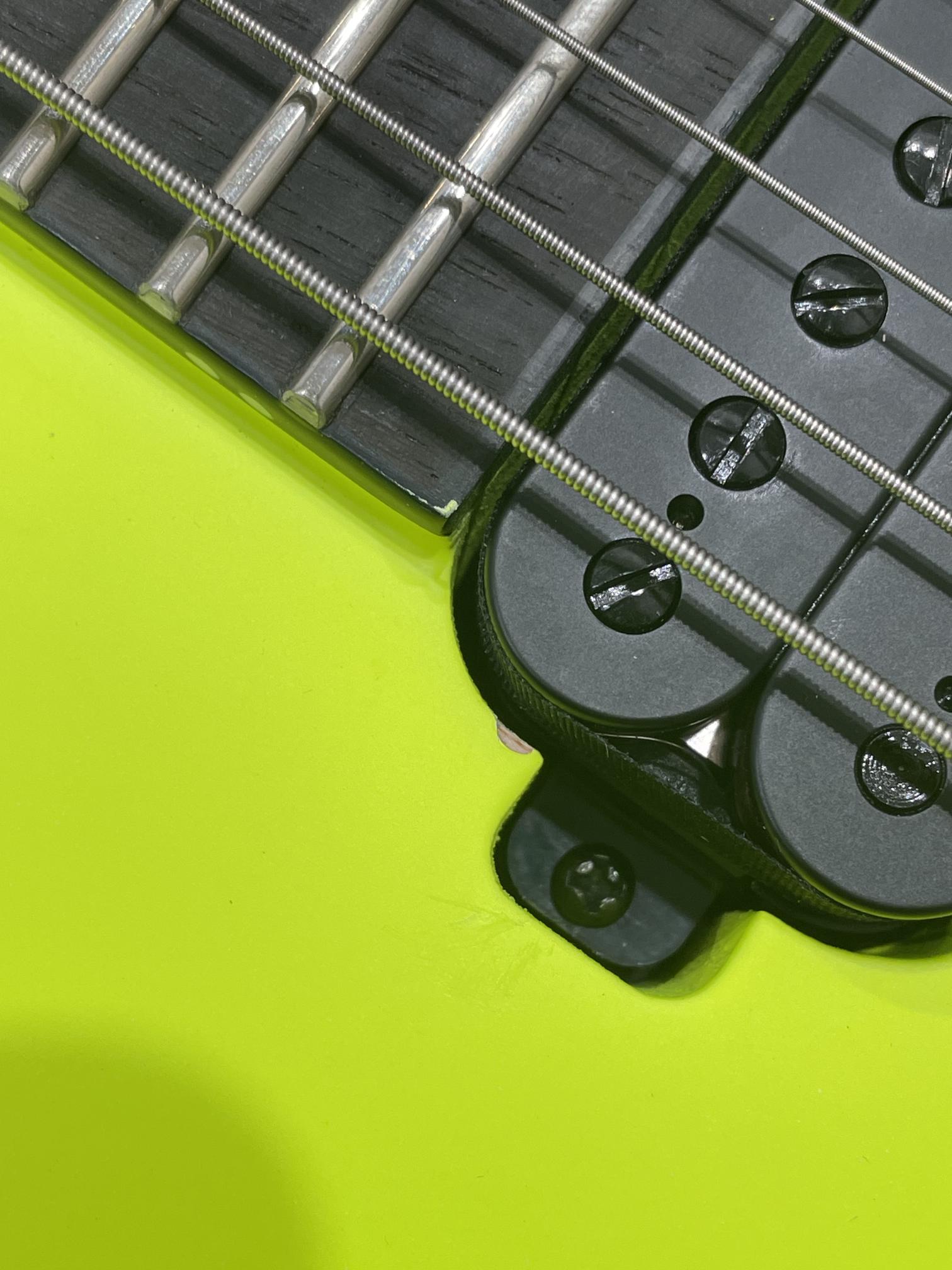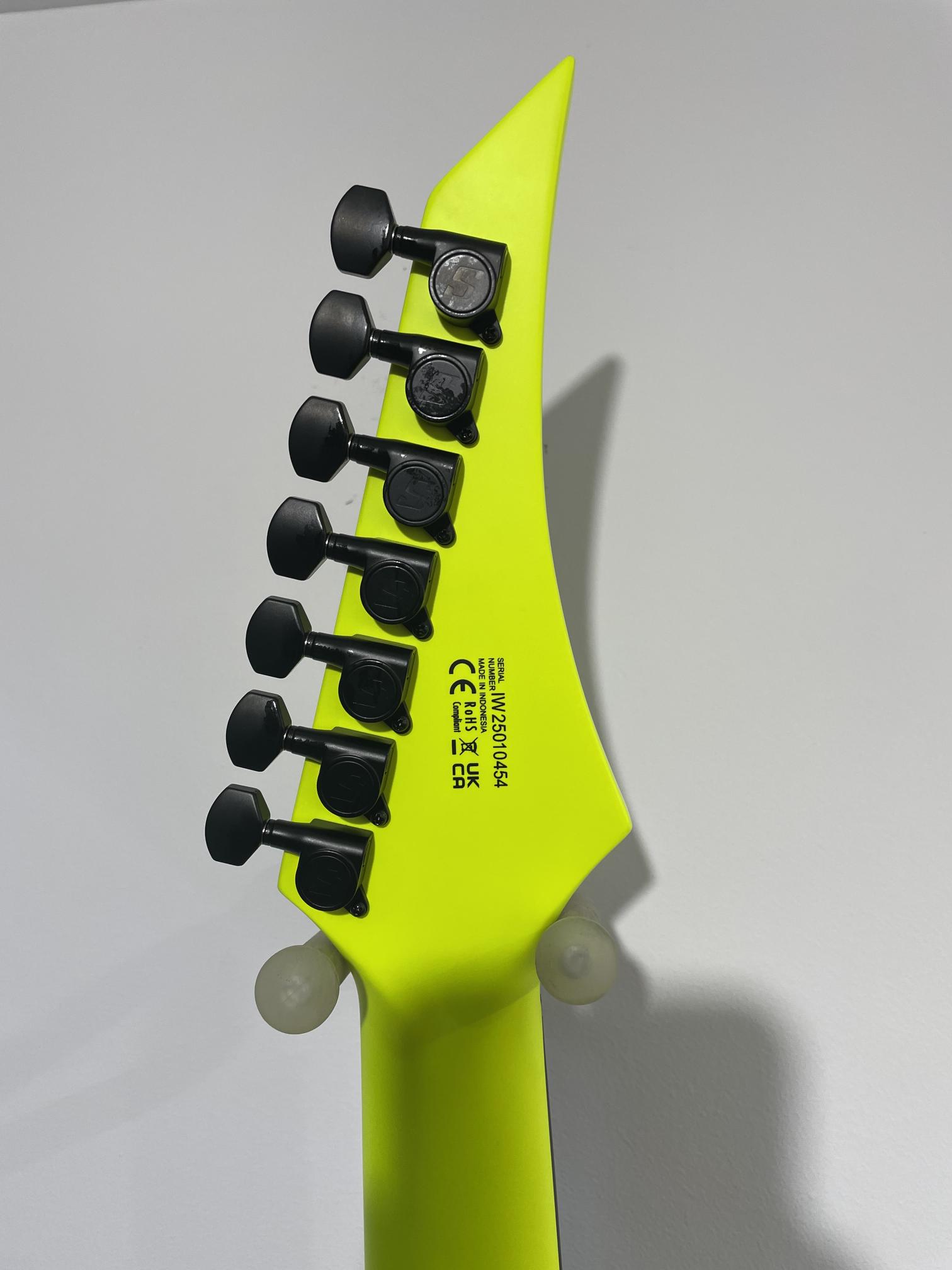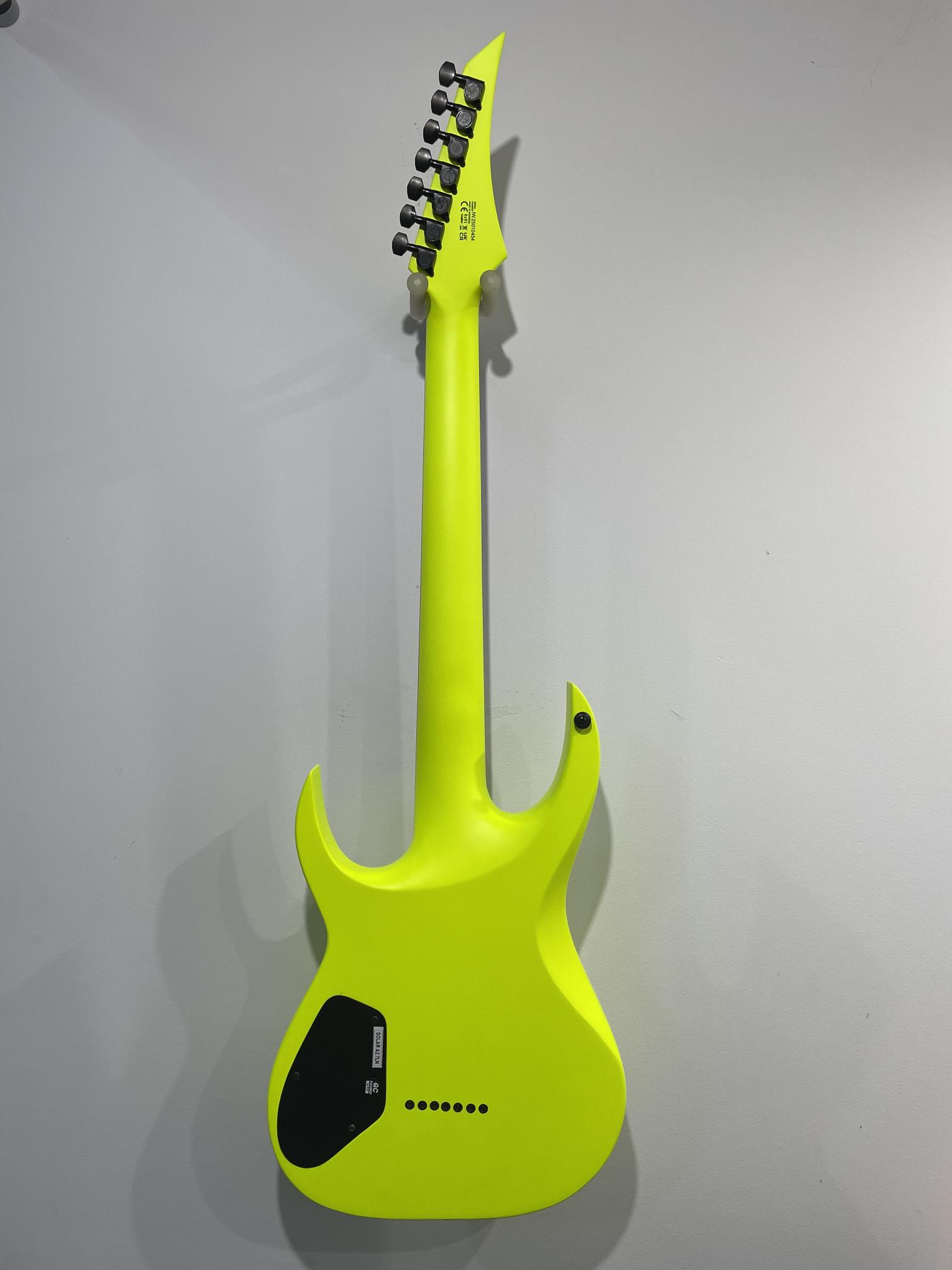 This Type A2.7 - lemon neon matte is a seven-string guitar boasts stealth looks, a distinctive cutaway scoop and a remarkable feature set, making it a precise, professional instrument suitable for both stage and studio work. It comes loaded with a reliable string-through-body hardtail bridge and Duncan Solar pickups that provide a full spectrum of tonal options, from organic clean to heavily overdriven, all with fluid sustain and maximum clarity. The Type A2.7 features a set-thru neck/body joint design with 26.5” scale, a mahogany body, a fast, thin, comfortable maple neck and a rosewood fingerboard with 24 super-jumbo frets. This guitar includes Solar 18:1 tuners, PPS nut, black matte hardware, five-way blade pickup switching and full access neck. Available in lemon neon matte finish.