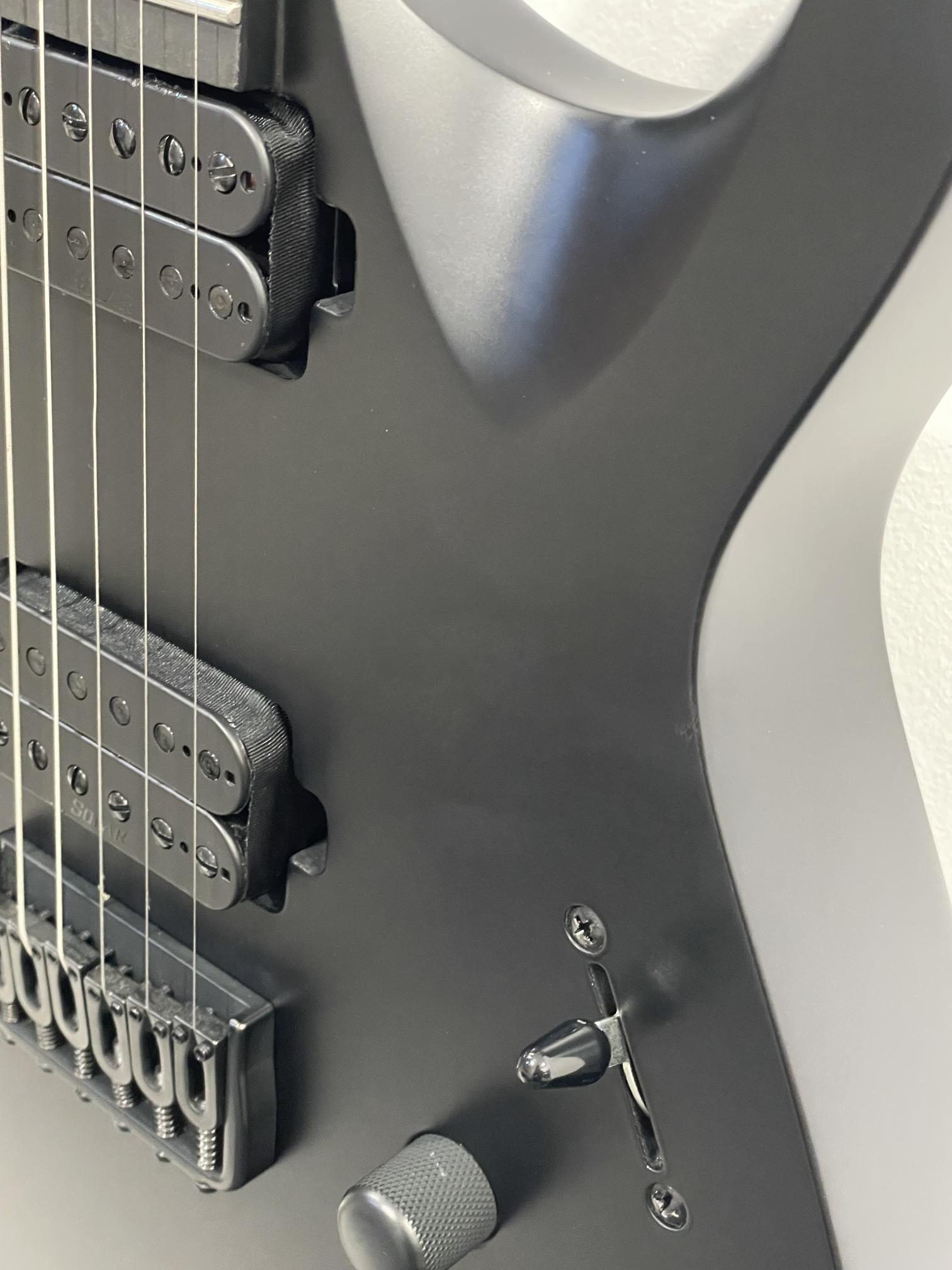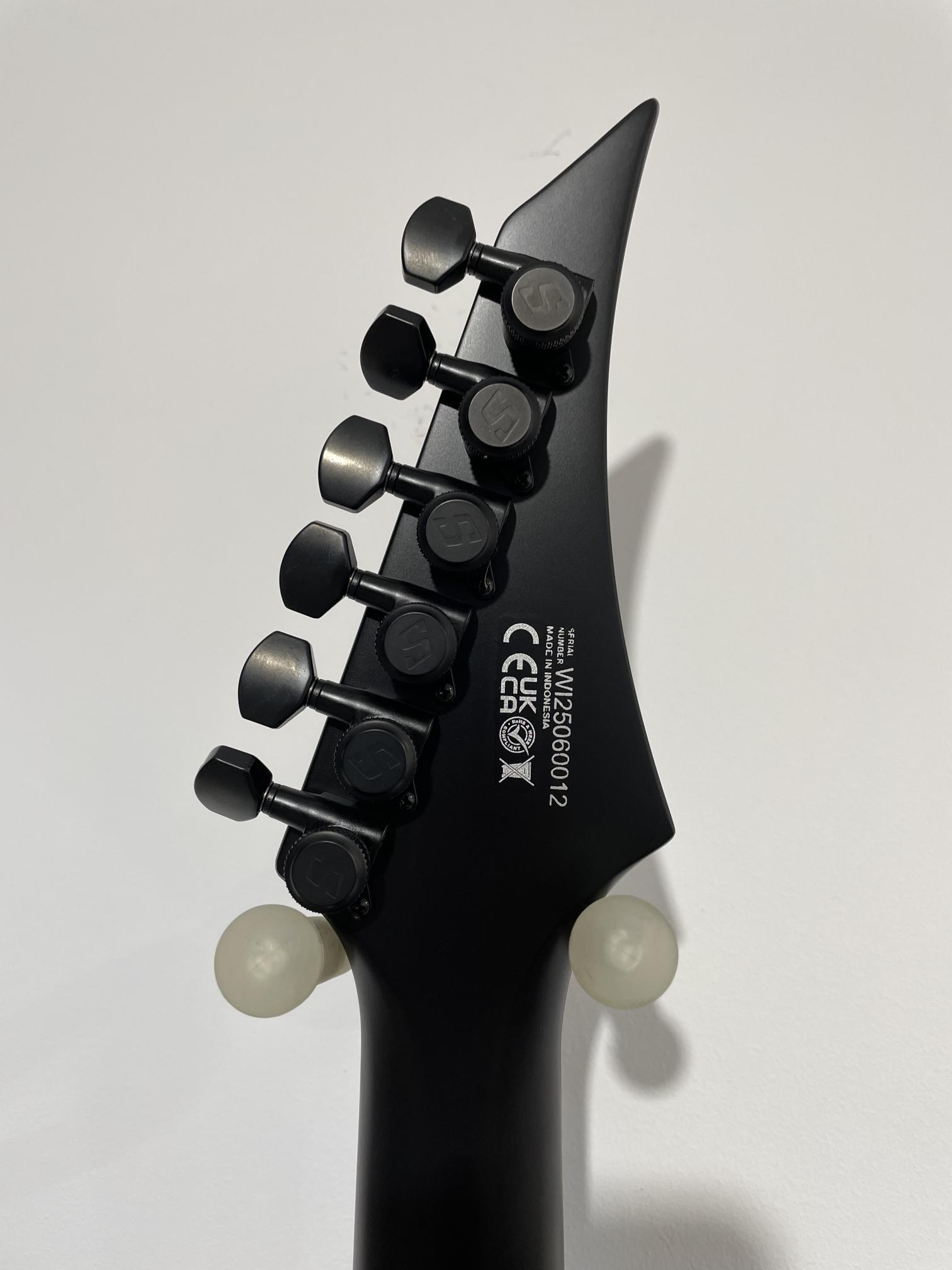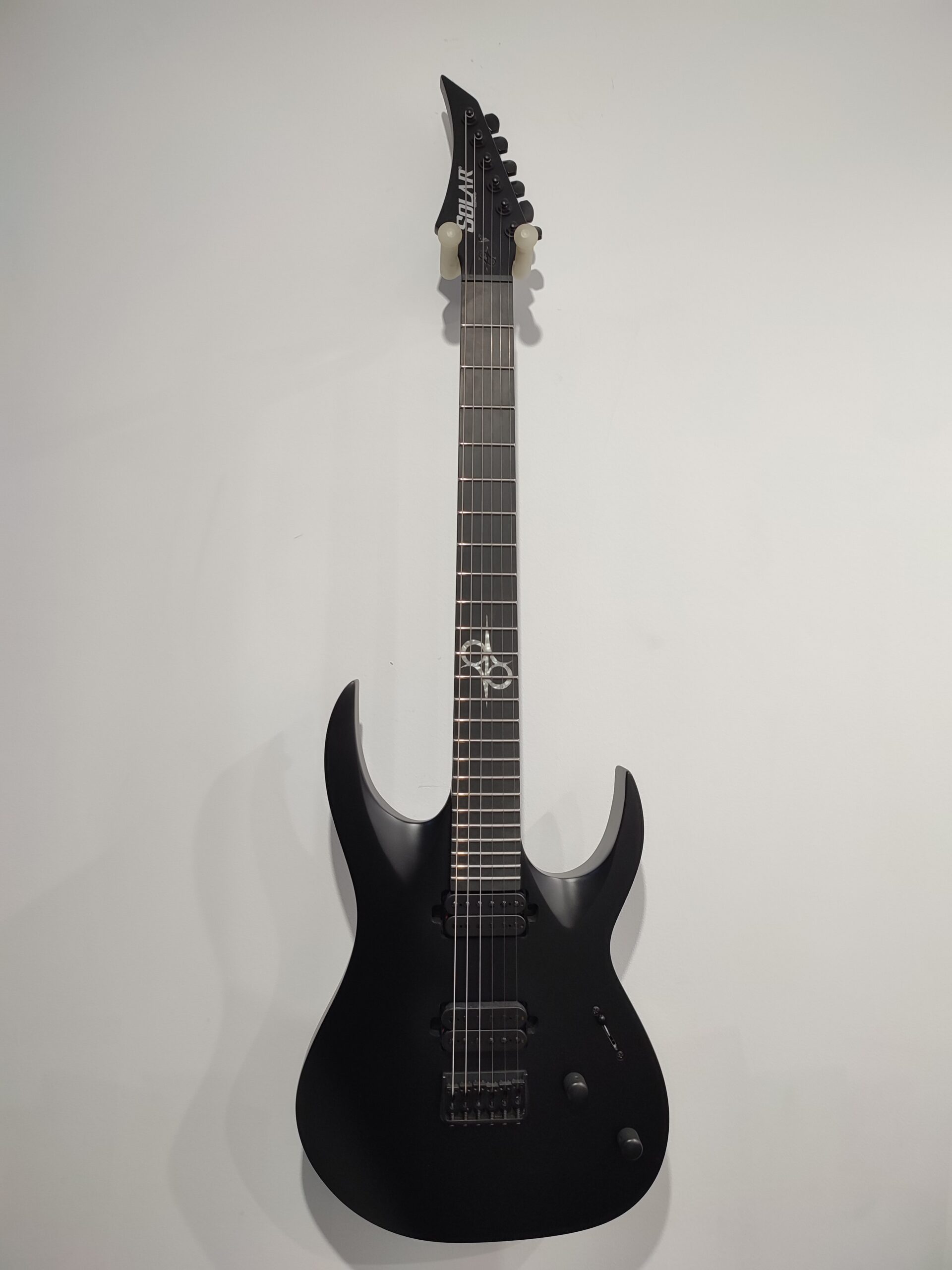 This Type A1.6RHC six string guitar boasts stealth looks, a distinctive cutaway scoop and a remarkable feature set, making it the ultimate, precise and professional instrument suitable for both stage and studio work. This guitar features a brass fixed bridge with one piece brass string ferrule block for optimal tone transfer and additional definition. It features a set of Solar Standard pickups provide classic Alnico tone. The Type A1.6RHC features a set-thru neck/body joint design with 25.5” scale, an alder body, a fast, thin, comfortable maple neck, a richlite fingerboard with 24 stainless steel super-jumbo frets and ‘glow in the dark’ side dots for easy stage use. Loaded with Solar 18:1 locking tuners, graphite nut, five-way blade pickup switching and full access neck. Available in carbon black matte finish.