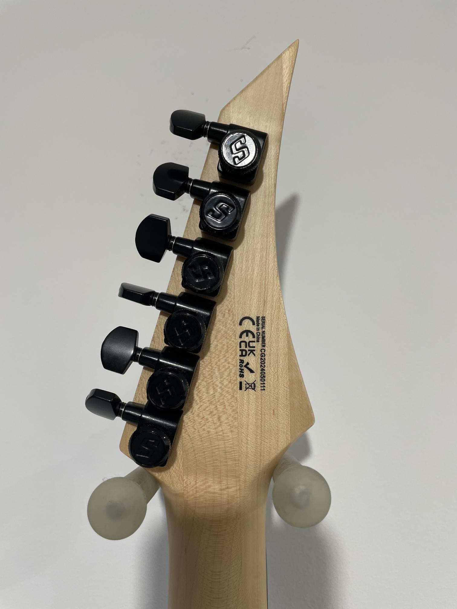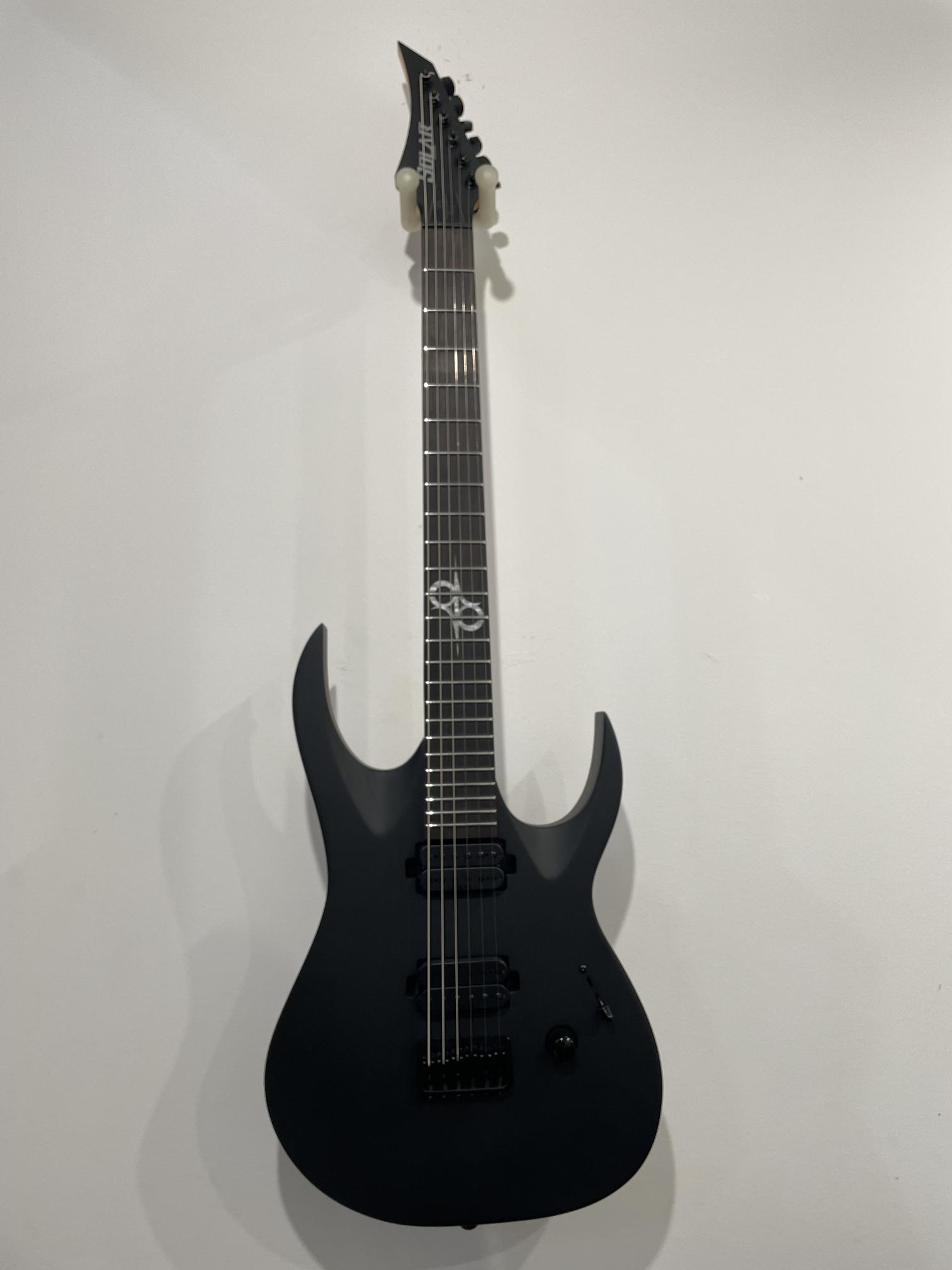 This Type AB2.6C six-string guitar boasts stealth looks, a distinctive cutaway scoop and a remarkable feature set, making it a precise, professional instrument suitable for both stage and studio work. It comes loaded with a reliable string-through-body hardtail , fixed bridge and a set of Solar Standard pickups provide classic Alnico tone. The Type AB2.6C is a bolt-on 25.5” scale instrument featuring a basswood body, comfortable maple neck and rosewood fingerboard with 24 super-jumbo frets. It also includes Solar locking tuners, Graphtech Nubone nut, black matte hardware, five-way blade pickup switching and full access neck. Available in carbon black matte finish.