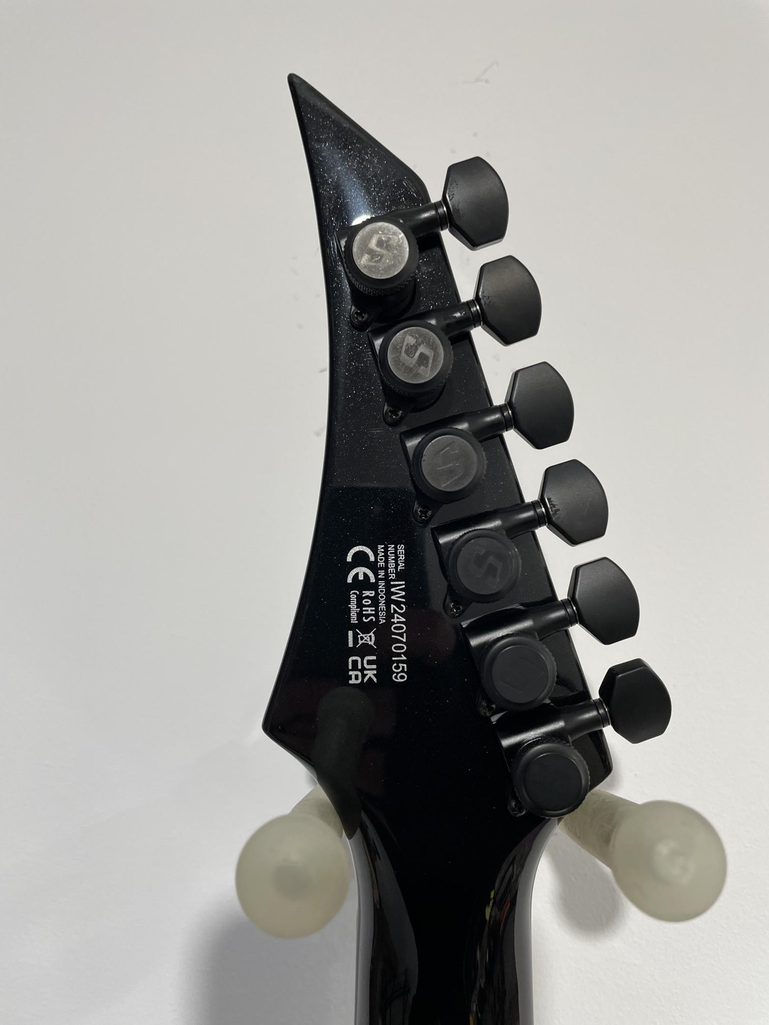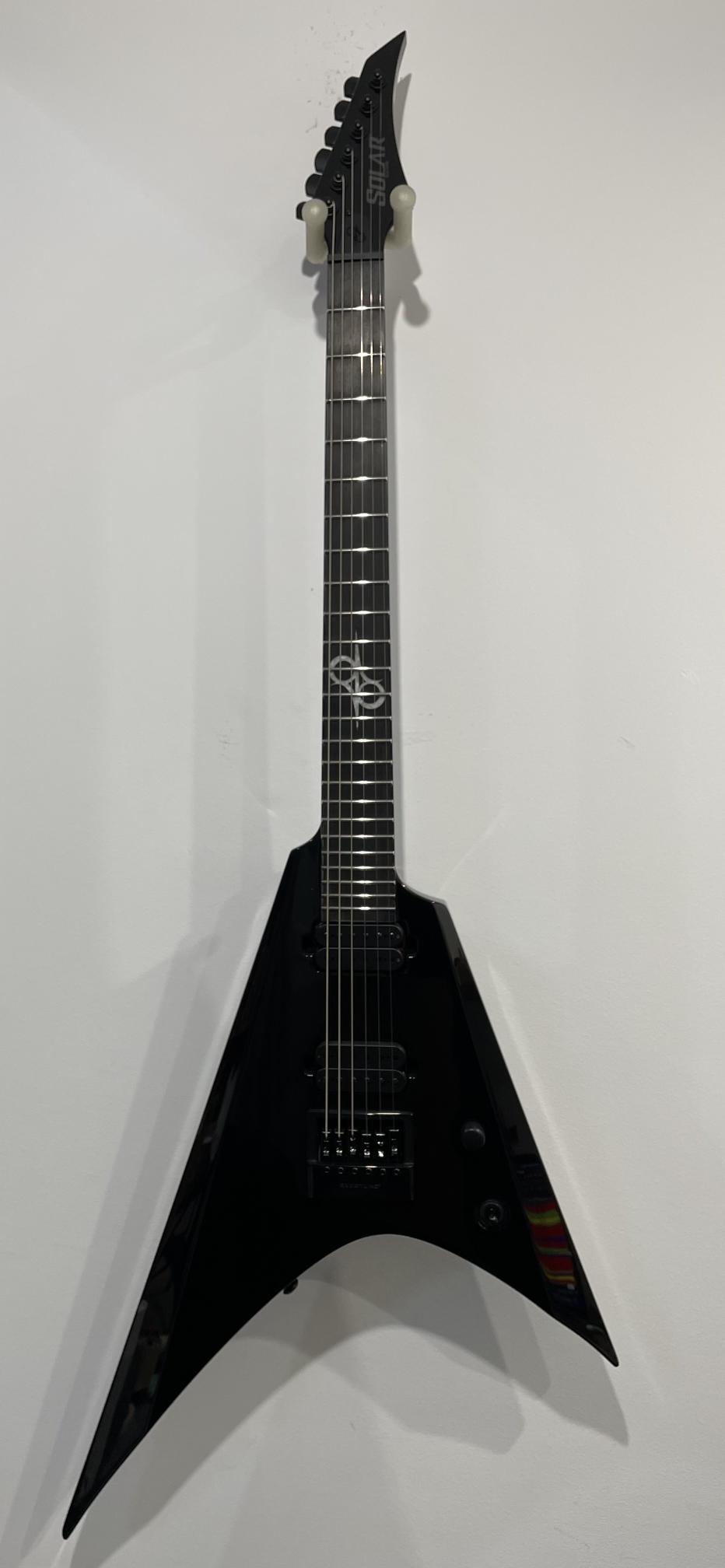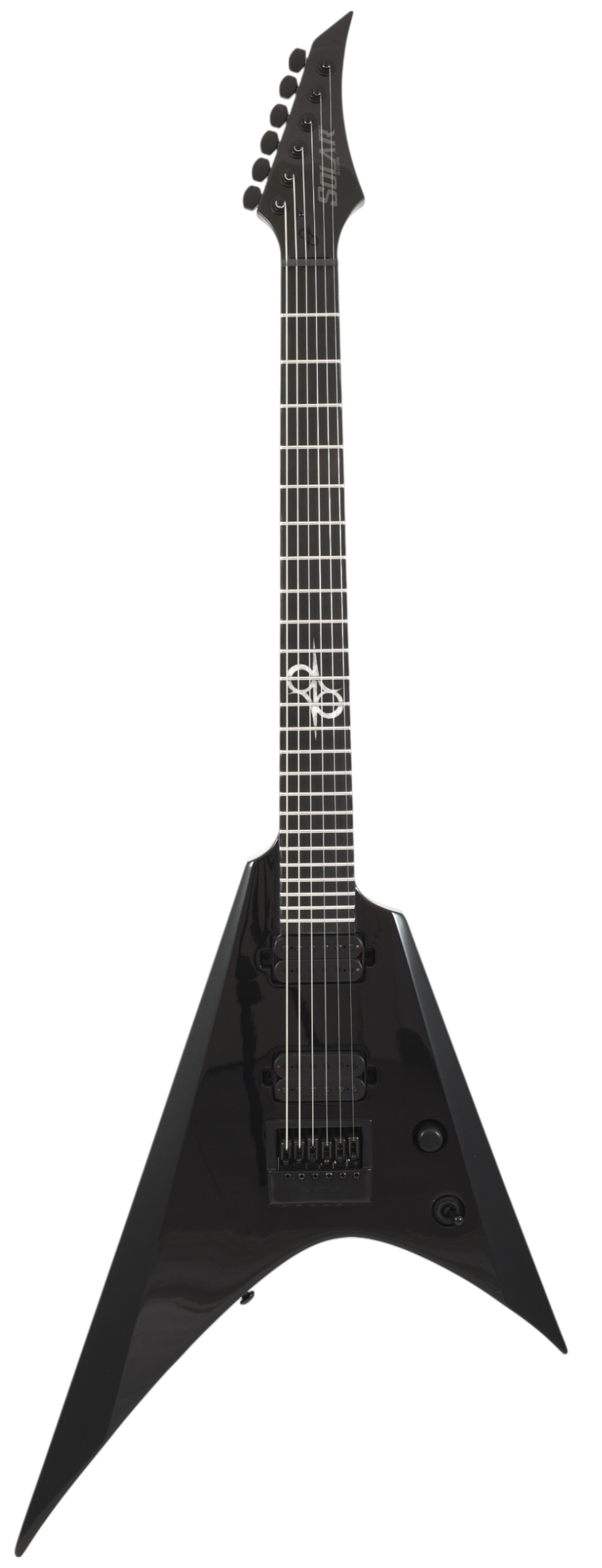 This Type VAR1.6MNS+ seven-string guitar will set you apart from everyone else. With its distinctive, stealth looks and feature set, this guitar is a precise, professional instrument suitable for both stage and studio work.This guitar features the Evertune® constant-tension bridge—a reliable, fully-mechanical system that keeps the guitar in tune under any circumstances . It also features a set of newly designed Duncan Solar+ (Plus) high gain pickups, featuring Alnico VIII magnets, for maximum impact, grind and aggression. The Type VAR1.6MNS+ features a set-thru neck/body joint design with 25.5” scale, alder body, a fast, thin, comfortable maple neck, an ebony fingerboard with 24 super-jumbo stainless steel frets and Luminlay ‘glow in the dark’ side dots for stage use. Loaded with Solar 18:1 locking tuners, PPS nut, 3-way toggle pickup switching , single volume pot, and full access neck. Available midnight sky metallic gloss finish, it also includes a Solar Type VAR hardcase.