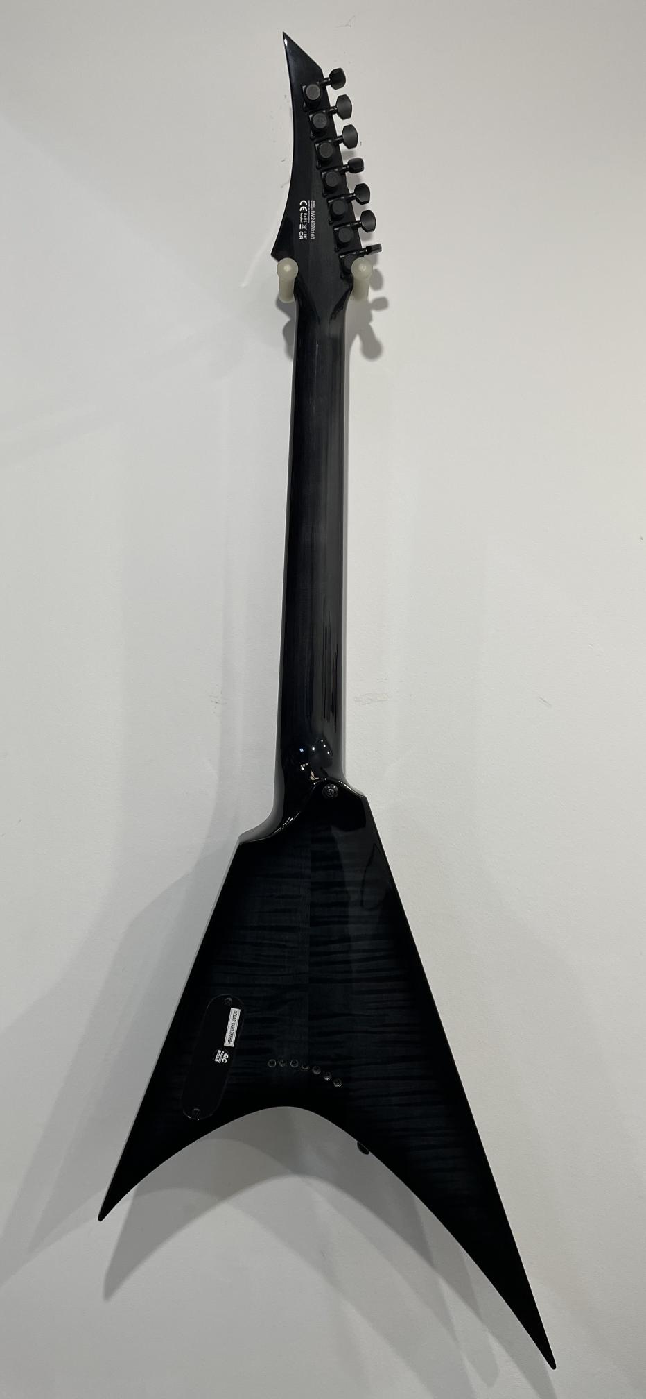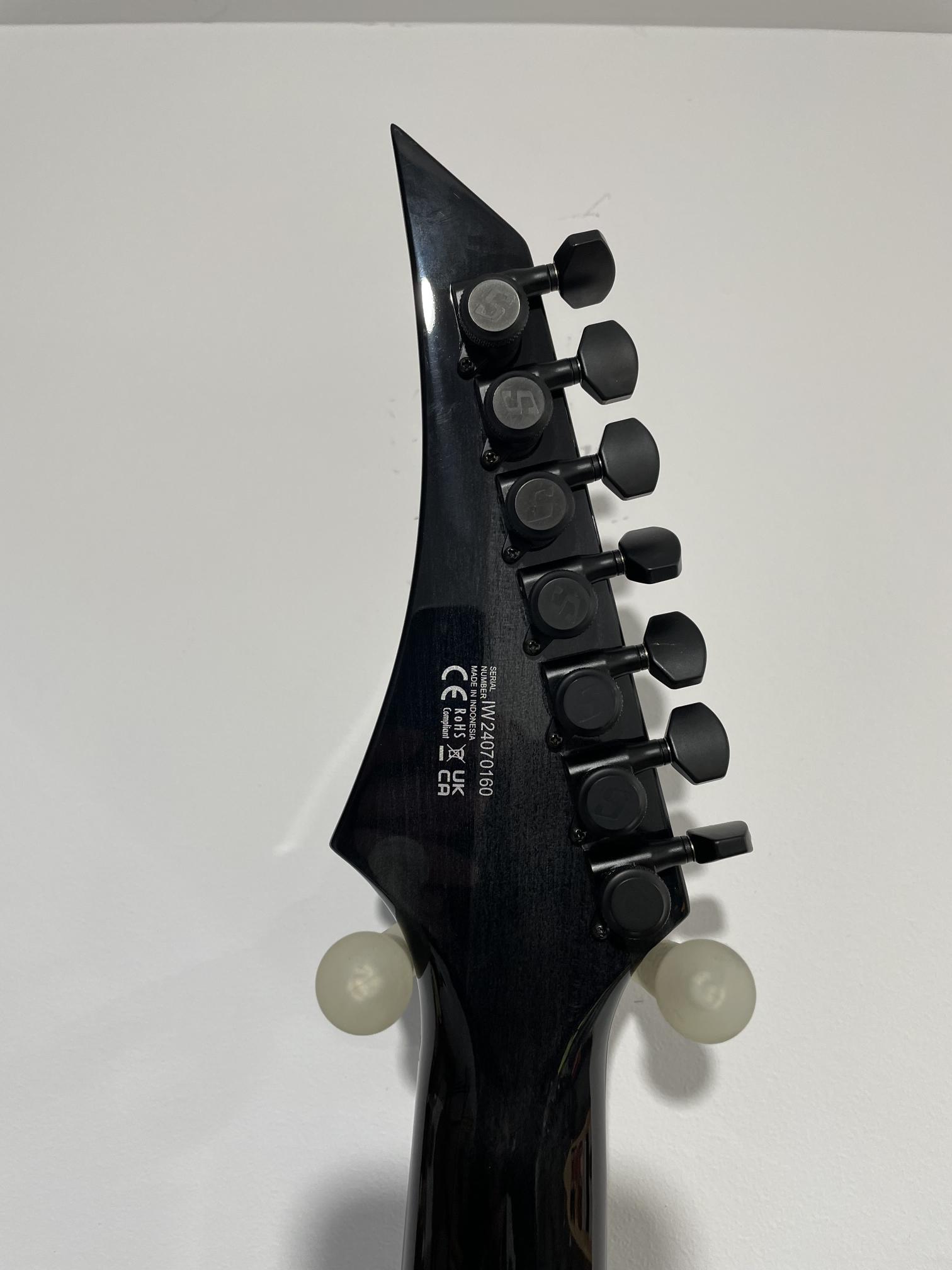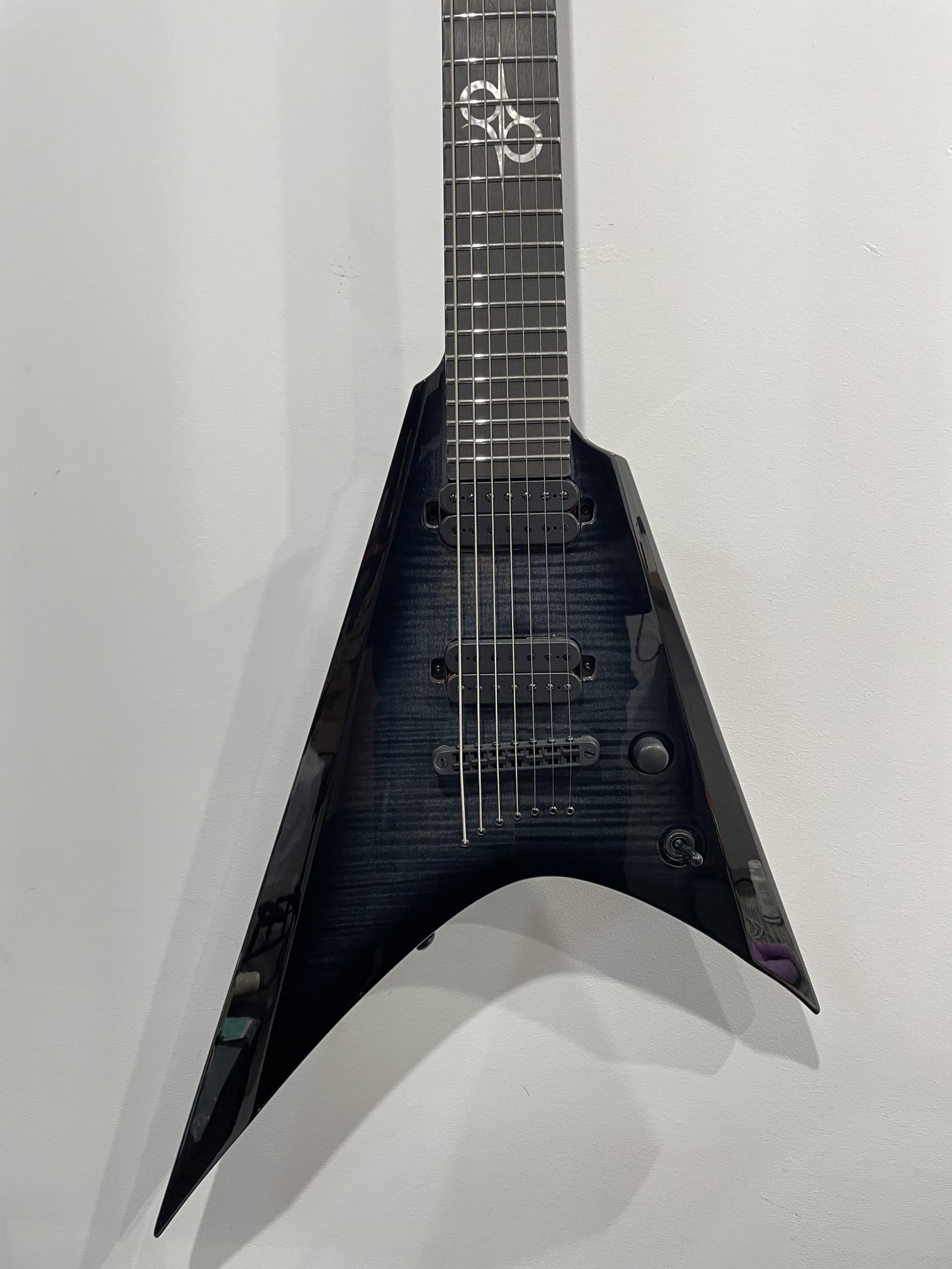 This Type VAR1.7TFBB+ seven-string guitar will set you apart from everyone else. With its distinctive, stealth looks and feature set, this guitar is a precise, professional instrument suitable for both stage and studio work. This guitar has a Tonepros locking TOM bridge and string thru body . It also features a set of newly designed Duncan Solar+ (Plus) high gain pickups, featuring Alnico VIII magnets, for maximum impact, grind and aggression.The Type VAR1.7TFBB+ features a set-thru neck/body joint design with 25.5” scale, mahogany body with flame maple veneer, a fast, thin, comfortable maple neck, an ebony fingerboard with 24 super-jumbo stainless steel frets and Luminlay ‘glow in the dark’ side dots for stage use. Loaded with Solar 18:1 locking tuners, PPS nut, 3-way toggle pickup switching , single volume pot, and full access neck. Available in flame trans black burst gloss finish, it also includes a Solar Type VAR hardcase.