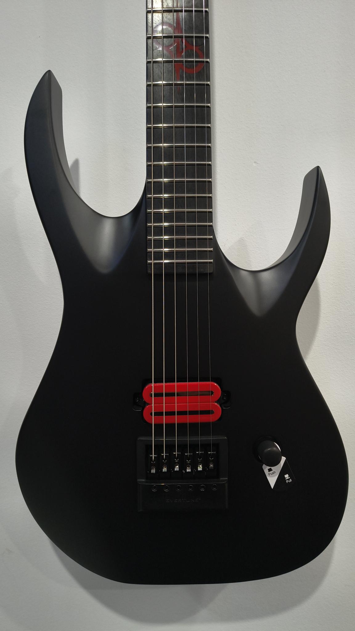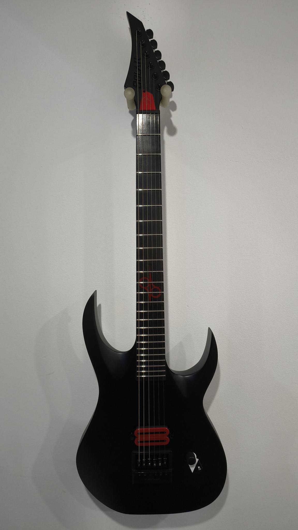 This A1.61A Assassin six-string guitar boasts stealth looks, a distinctive cutaway scoop and a remarkable feature set, making it the ultimate, precise and professional instrument suitable for both stage and studio work. It features the Evertune® constant-tension bridge—a reliable, fully-mechanical system that keeps the guitar in tune under any circumstances and a bridge Fishman Fluence Open Core Modern ceramic active humbucker pickup revealing pure, uncorrupted and musical tone.The Type A1.61A Assassin features a set-thru neck/body joint design with 25.5” scale, an alder body, a fast, thin, comfortable maple neck, an ebony fingerboard with 24 super-jumbo stainless steel frets and Luminlay ‘glow in the dark’ side dots for easy stage use. Loaded with Solar 18:1 locking tuners, locking nut, single volume knob with push / pulland full access neck. Available in carbon black matte finish. 9V Battery is not included.