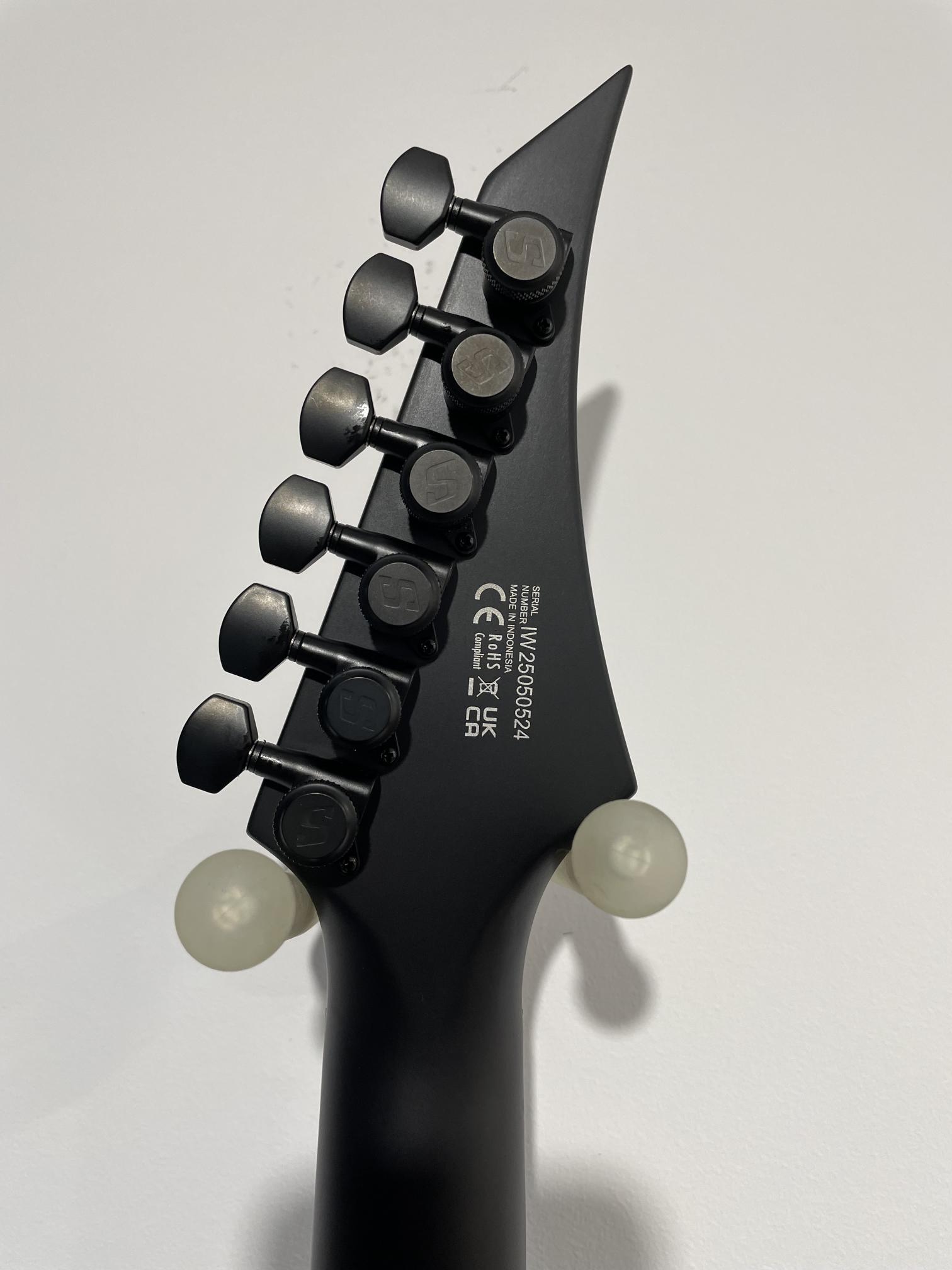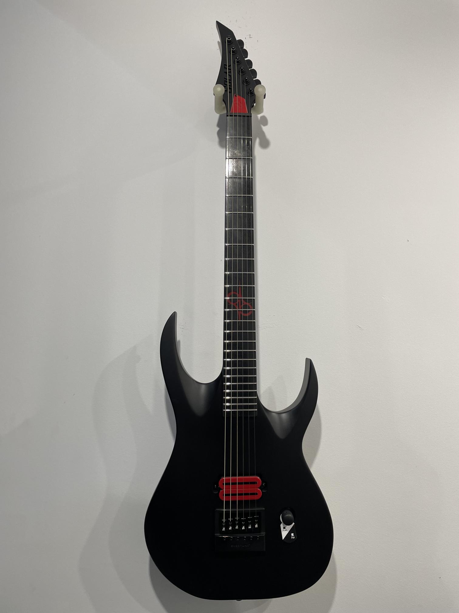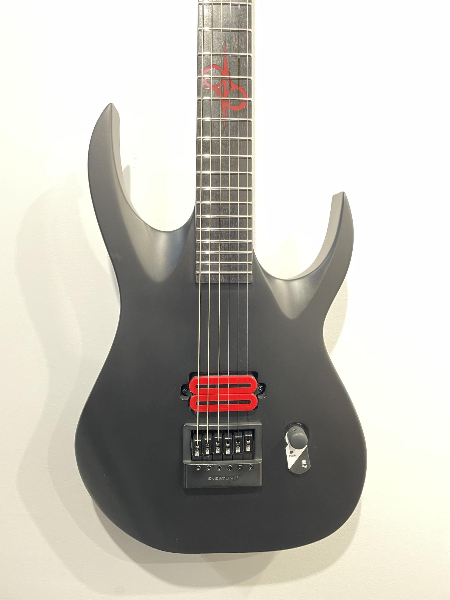 This A1.61A Assassin six-string guitar boasts stealth looks, a distinctive cutaway scoop and a remarkable feature set, making it the ultimate, precise and professional instrument suitable for both stage and studio work. It features the Evertune® constant-tension bridge—a reliable, fully-mechanical system that keeps the guitar in tune under any circumstances and a bridge Fishman Fluence Open Core Modern ceramic active humbucker pickup revealing pure, uncorrupted and musical tone.The Type A1.61A Assassin features a set-thru neck/body joint design with 25.5” scale, an alder body, a fast, thin, comfortable maple neck, an ebony fingerboard with 24 super-jumbo stainless steel frets and Luminlay ‘glow in the dark’ side dots for easy stage use. Loaded with Solar 18:1 locking tuners, locking nut, single volume knob with push / pulland full access neck. Available in carbon black matte finish. 9V Battery is not included.