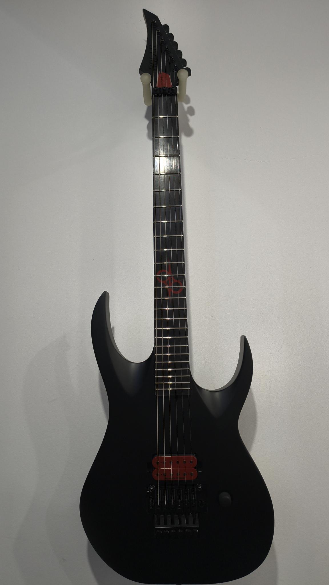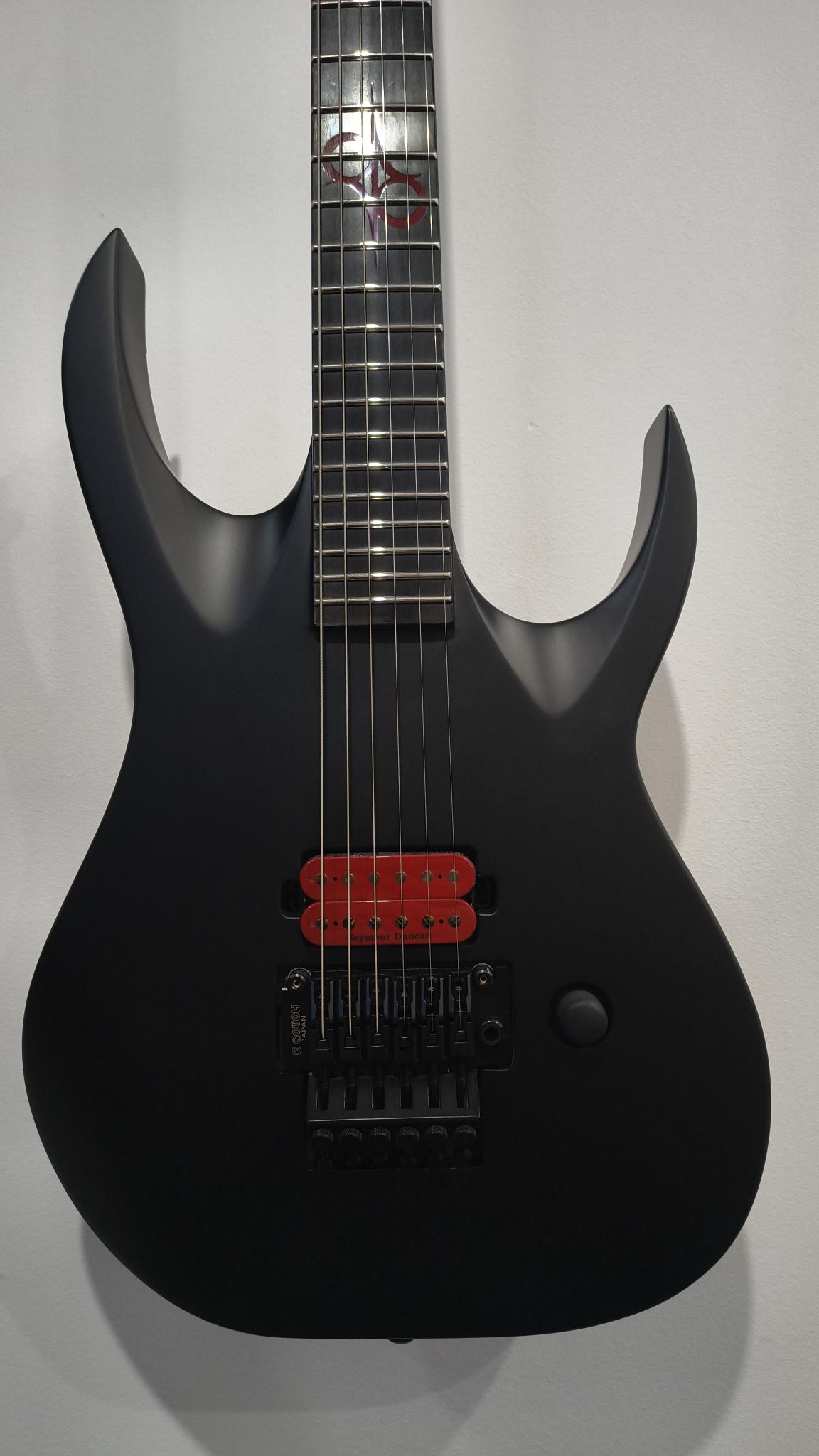 This A1.61FR Assassin six-string guitar boasts stealth looks, a distinctive cutaway scoop and a remarkable feature set, making it the ultimate, precise and professional instrument suitable for both stage and studio work. The superior and very reliable Gotoh GE1996T tremolo bridge with 12 mm thick / 33 mm long brass block offers increased sustain and resonance while all tremolo springs are mechanically muted. It also features a single Seymour Duncan USA Nazgul trembucker pickup for a gnarly yet cutting and precise tone.The Type A1.61FR Assassin features a set-thru neck/body joint design with 25.5” scale, an alder body, a fast, thin, comfortable maple neck, an ebony fingerboard with 24 super-jumbo stainless steel frets and Luminlay ‘glow in the dark’ side dots for easy stage use. Loaded with Solar 18:1 locking tuners, locking nut, single volume knob and full access neck. Available in carbon black matte finish.