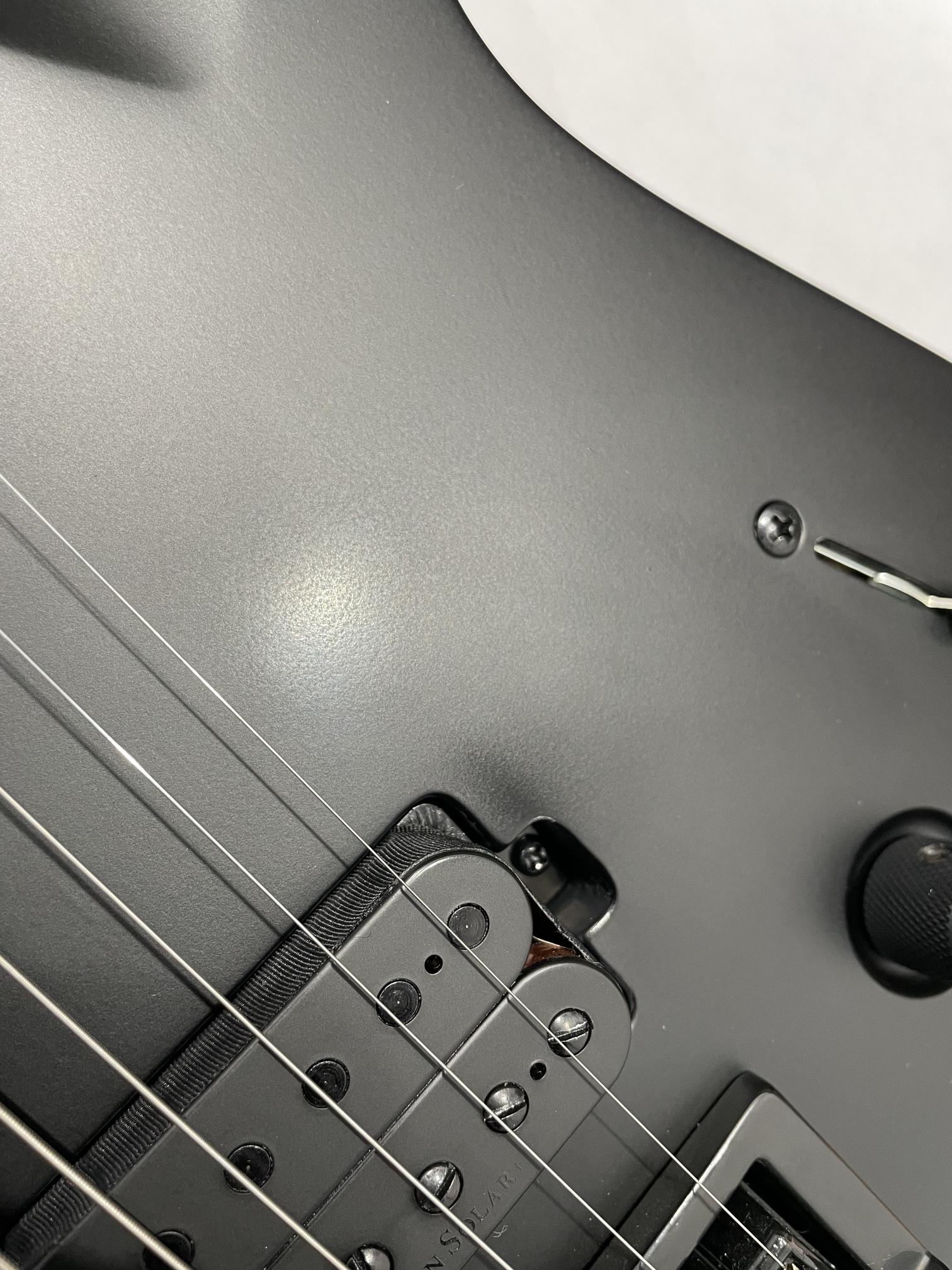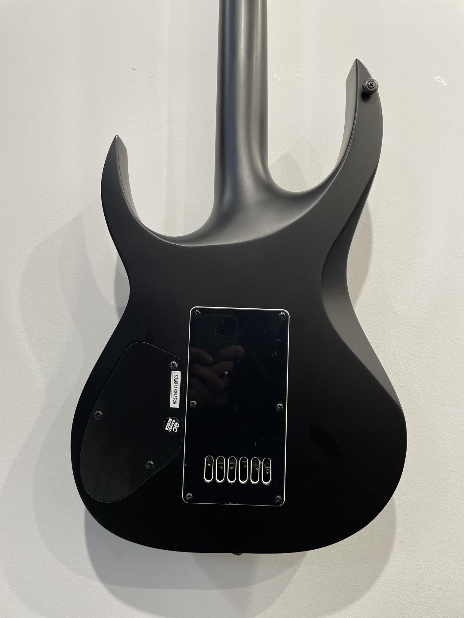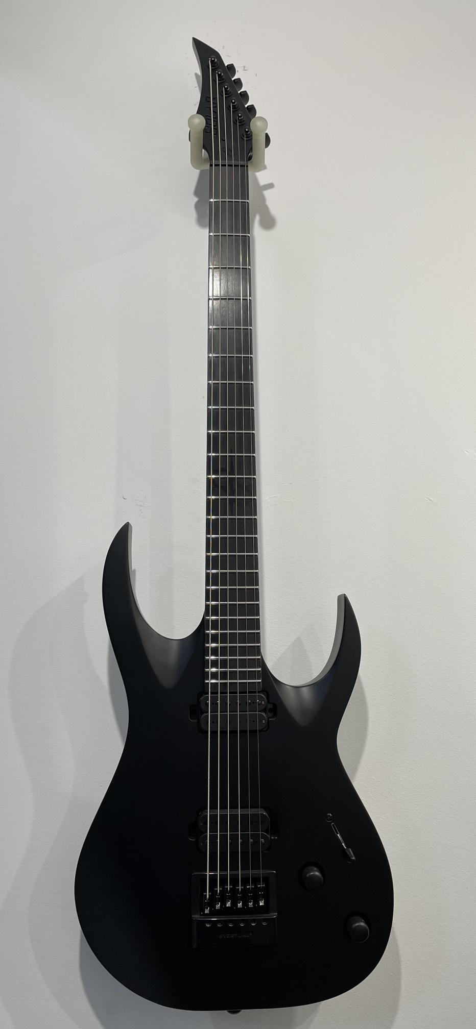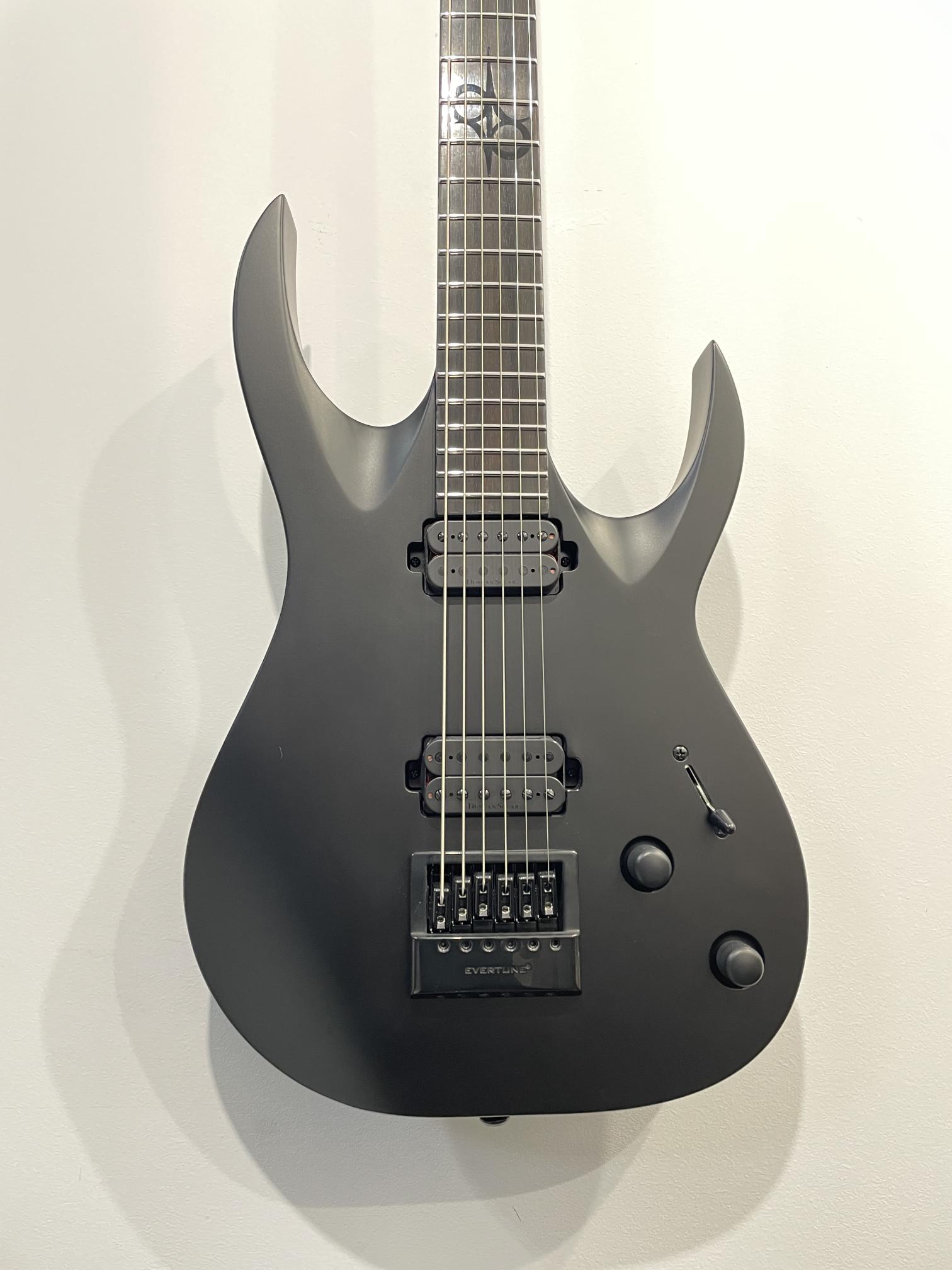 This Type A1.6Svart-29+ baritone six-string guitar boasts stealth looks, a distinctive cutaway scoop and a remarkable feature set, making it the ultimate, precise and professional instrument suitable for both stage and studio work. This guitar features the Evertune® constant-tension bridge—a reliable, fully-mechanical system that keeps the guitar in tune under any circumstances.It also features a set of newly designed Duncan Solar+ (Plus) high gain pickups, featuring Alnico VIII magnets, for maximum impact, grind and aggression.The Type A1.6Svart-29+ features a set-thru neck/body joint design with 29” scale, an alder body, a fast, thin, comfortable maple neck, an ebony fingerboard with 24 super-jumbo stainless steel frets and Luminlay ‘glow in the dark’ side dots for easy stage use. Loaded with Solar 18:1 locking tuners, PPS nut, five-way blade pickup switching and full access neck. Available in carbon black matte finish.