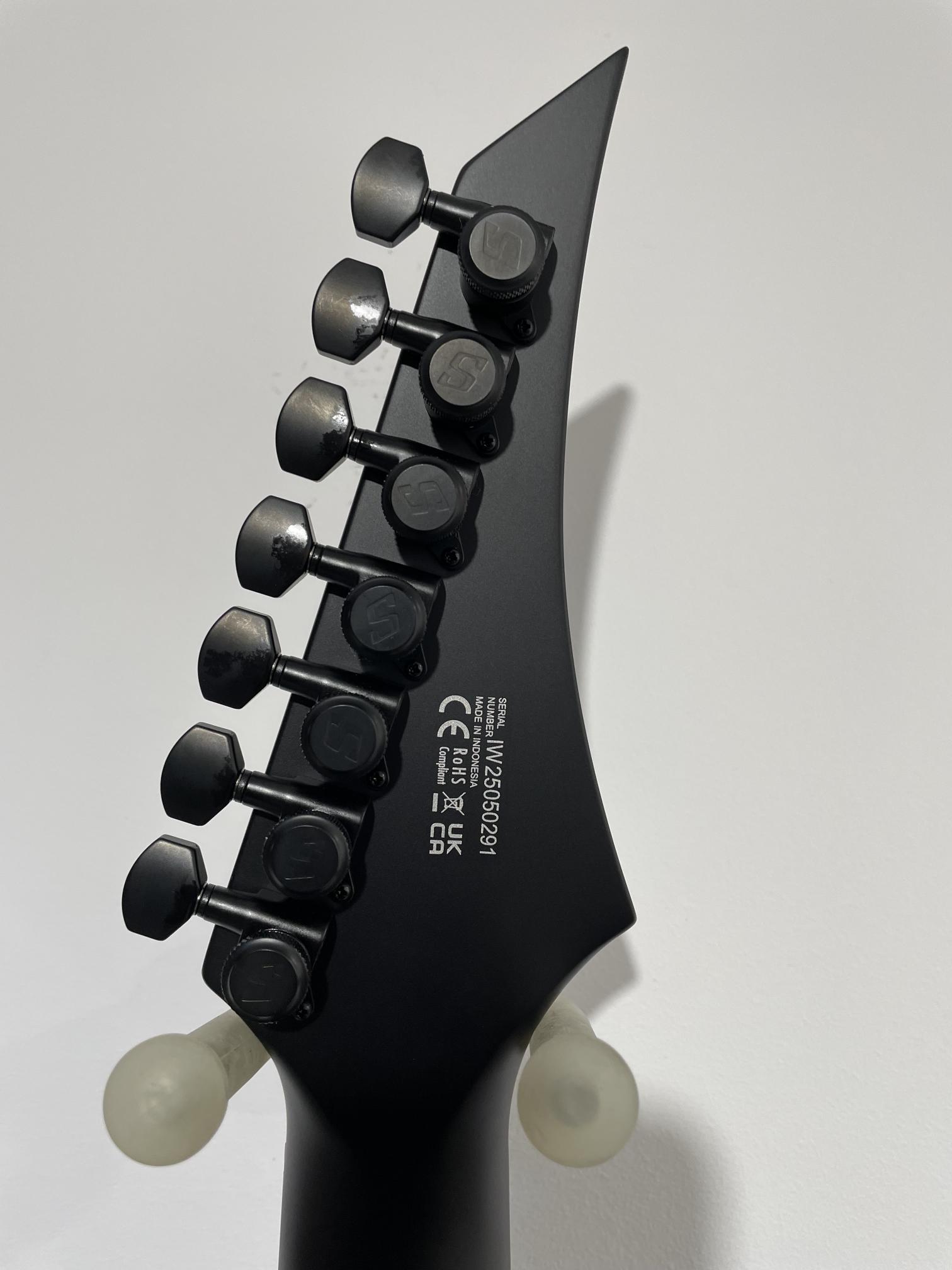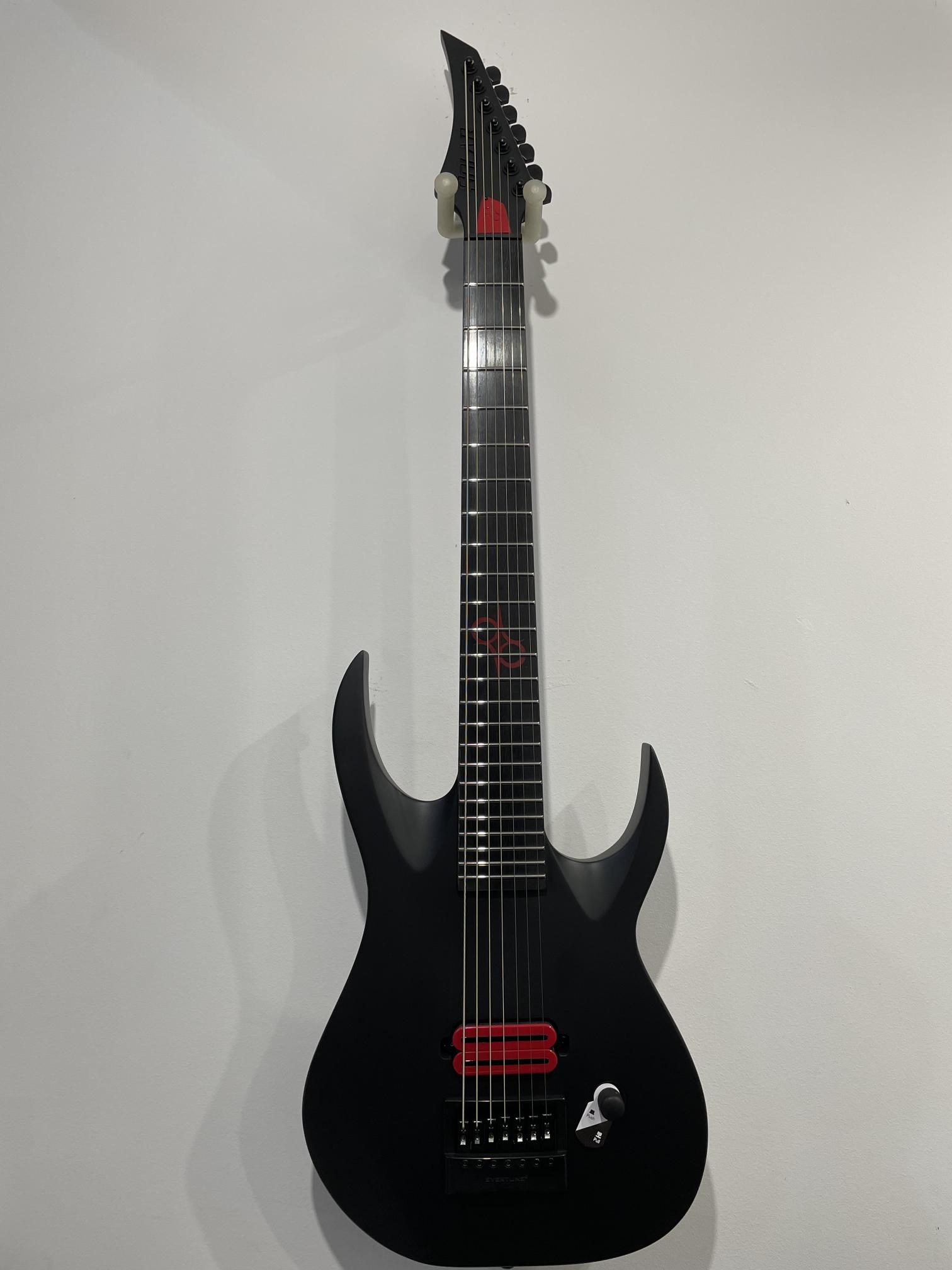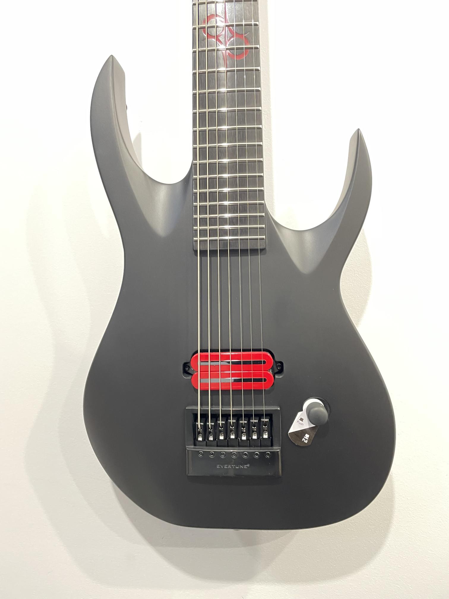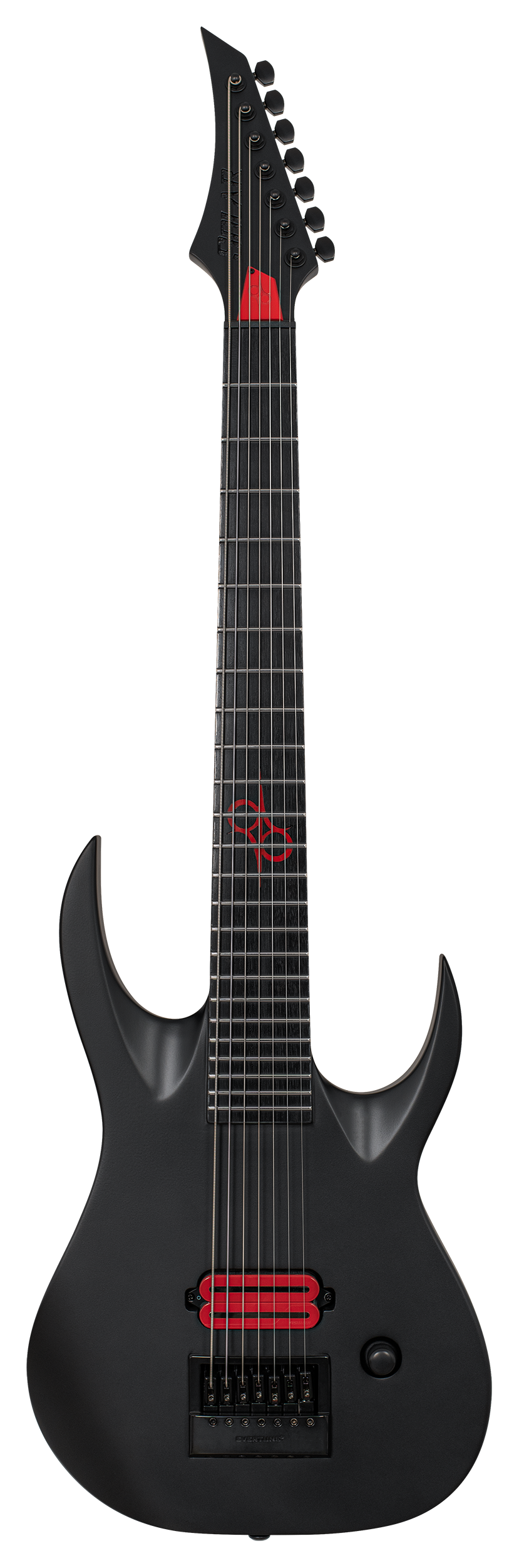 This Type A1.7A Assassin seven-string guitar boasts stealth looks, a distinctive cutaway scoop and a remarkable feature set, making it the ultimate, precise and professional instrument suitable for both stage and studio work. This guitar features the Evertune® constant-tension bridge—a reliable, fully-mechanical system that keeps the guitar in tune under any circumstances and is loaded with a single Fishman Fluence Open Core Modern ceramic active humbucker pickup, revealing pure, uncorrupted and musical tone. The Type A1.7A Assassin features a set-thru neck/body joint design with 26,5” scale, an alder body, a fast, thin, comfortable maple neck, an ebony fingerboard with 24 stainless steel super-jumbo frets and ‘glow in the dark’ side dots for easy stage use. This guitar is loaded with Solar 18:1 locking tuners, PPS nut, singkle volume with push-pull and full access neck. Available in carbon black matte color with black hardware. 9V battery not included.