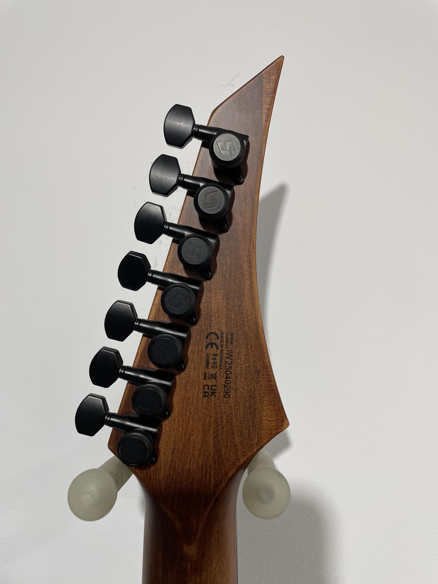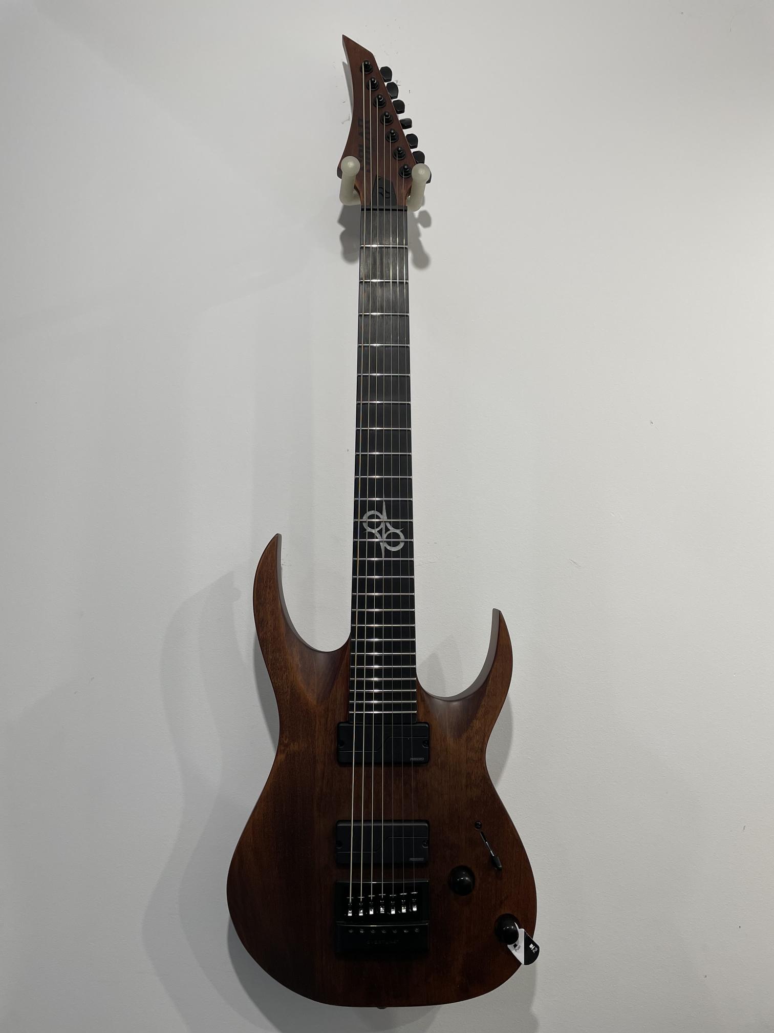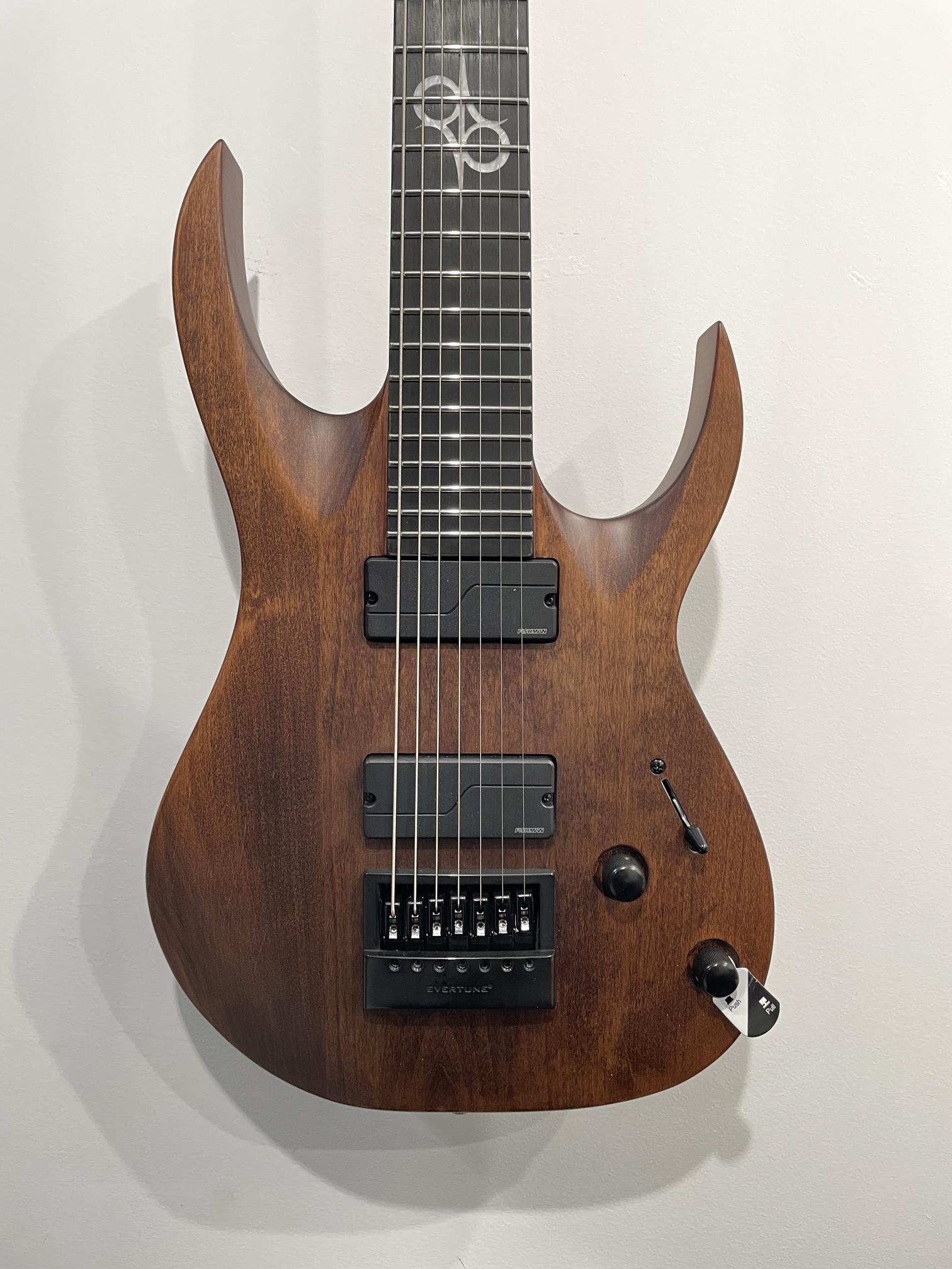 This Type A1.7AAN seven-string guitar boasts stealth looks, a distinctive cutaway scoop and a remarkable feature set, making it the ultimate, precise and professional instrument suitable for both stage and studio work. This guitar features the Evertune® constant-tension bridge—a reliable, fully-mechanical system that keeps the guitar in tune under any circumstances and is loaded with a pair of Fishman Fluence Modern active humbucker pickups revealing pure, uncorrupted and musical tone. The Type A1.7AAN features a set-thru neck/body joint design with 26,5” scale, an alder body, a fast, thin, comfortable maple neck, an ebony fingerboard with 24 stainless steel super-jumbo frets and ‘glow in the dark’ side dots for easy stage use. This well balanced 7-string guitar is loaded with Solar 18:1 locking tuners, PPS nut, five-way blade pickup switching and full access neck. Available in aged natural matte color with black hardware. 9V battery not included. NOTE: Due to the aged wood finish , these guitars willingly feature wood streaks, small paint buildups, dings, discolouration, evident wood body joints and random wood tonality . In case you are searching for a perfectly homogenous and smooth finished guitar, we suggest that you have a look at a different model of our catalog.