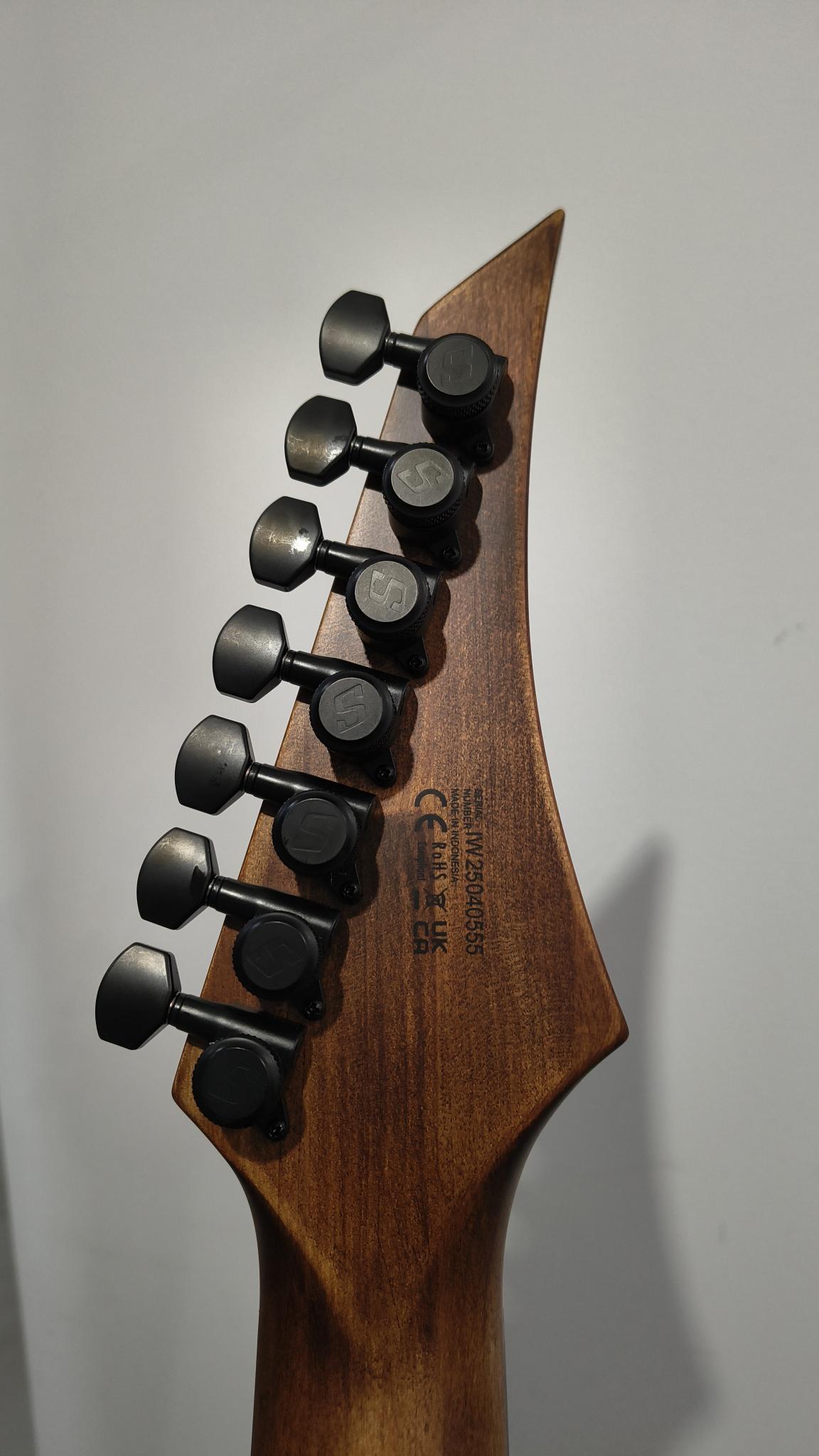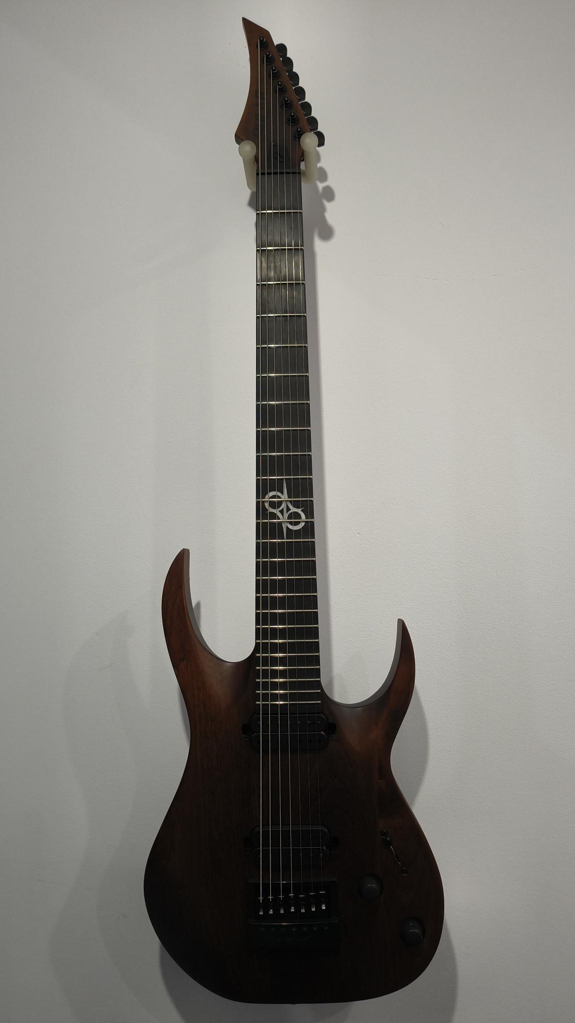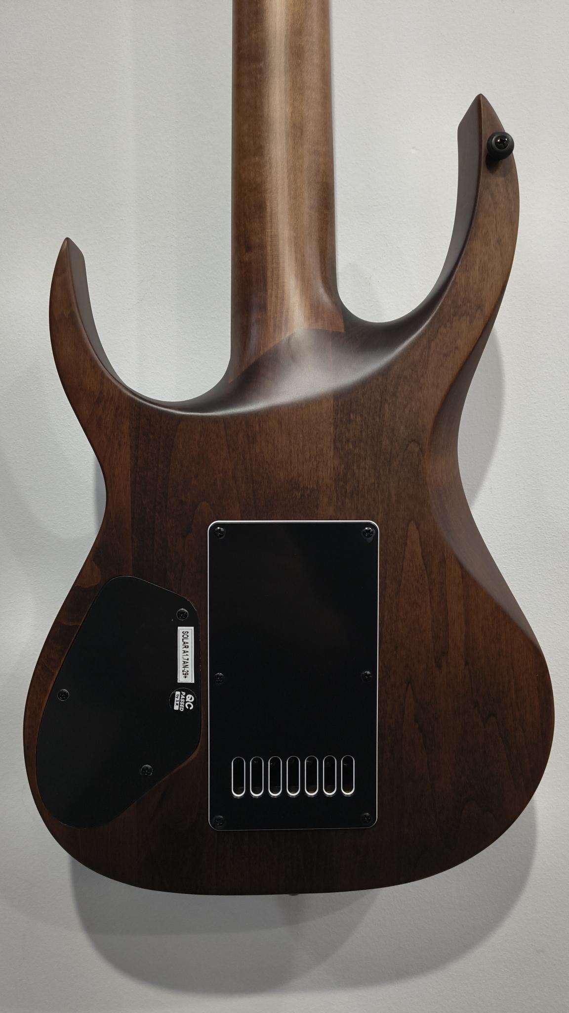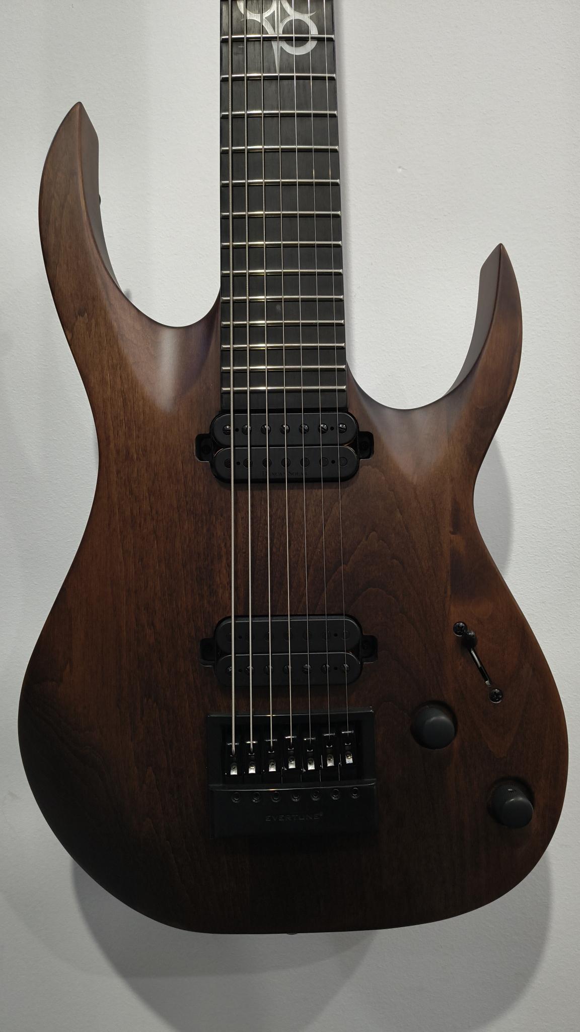 This Type A1.7AN-29+ seven-string guitar boasts stealth looks, a distinctive cutaway scoop and a remarkable feature set, making it the ultimate, precise and professional instrument suitable for both stage and studio work. This guitar features the Evertune® constant-tension bridge—a reliable, fully-mechanical system that keeps the guitar in tune under any circumstances. It also features a set of newly designed Duncan Solar+ (Plus) high gain pickups, featuring Alnico VIII magnets, for maximum impact, grind and aggression. .The Type A1.7AN-29+ features a set-thru neck/body joint design with 29” scale, an alder body, a fast, thin, comfortable maple neck, an ebony fingerboard with 24 stainless steel super-jumbo frets and ‘glow in the dark’ side dots for easy stage use. This well balanced 7-string guitar is loaded with Solar 18:1 locking tuners, PPS nut, five-way blade pickup switching and full access neck. Available in aged natural matte color with black hardware.