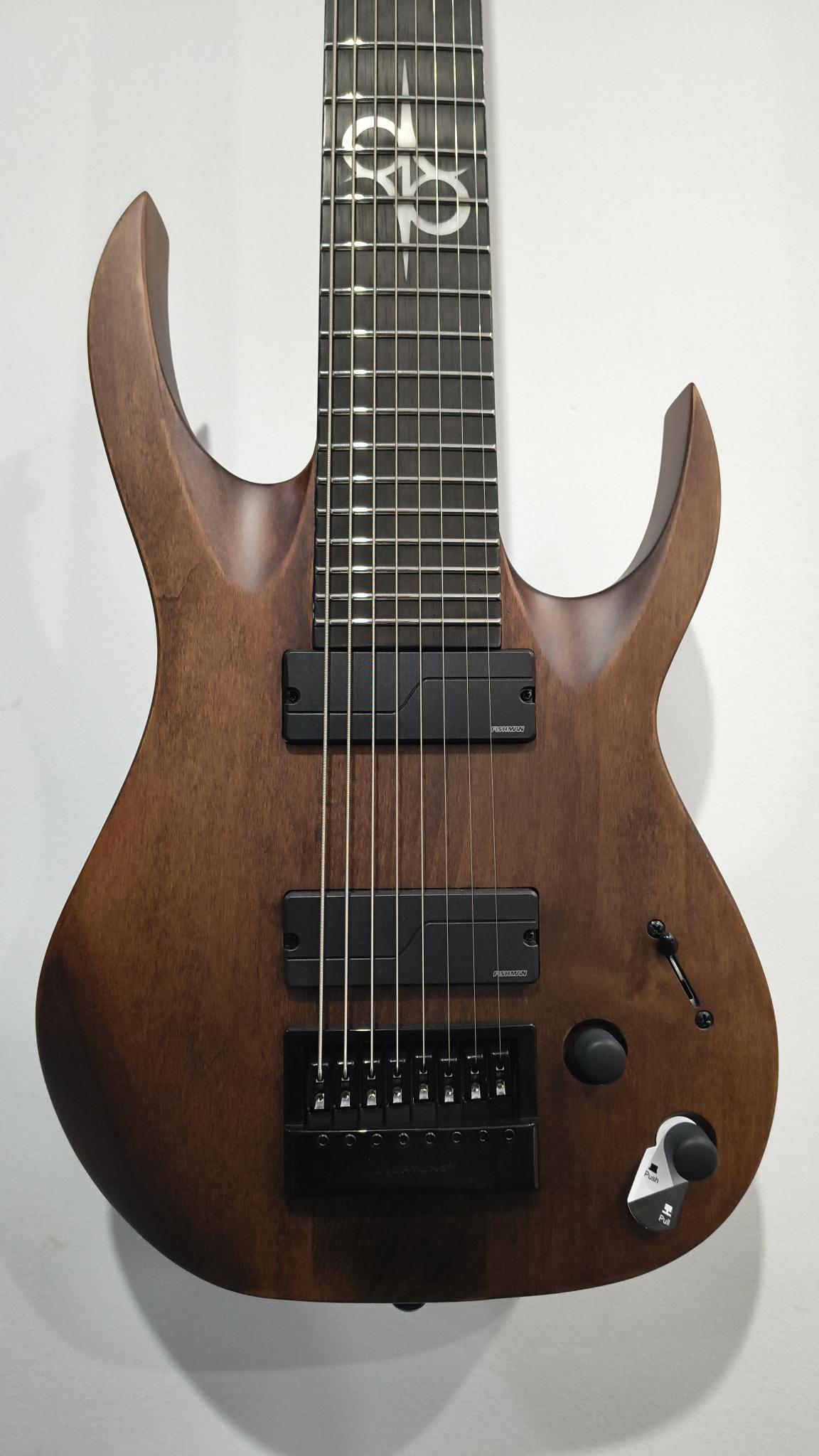 This Type A1.8AAN eight-string guitar boasts stealth looks, a distinctive cutaway scoop and a remarkable feature set, making it the ultimate, precise and professional instrument suitable for both stage and studio work. This guitar features the Evertune® constant-tension bridge—a reliable, fully-mechanical system that keeps the guitar in tune under any circumstances and is loaded with a pair of Fishman Fluence Modern active humbucker pickups revealing pure, uncorrupted and musical tone. The Type A1.8AAN features a set-thru neck/body joint design with 27” scale, an alder body, a fast, thin, comfortable maple neck, an ebony fingerboard with 24 stainless steel super-jumbo frets and ‘glow in the dark’ side dots for easy stage use. This well balanced 8-string guitar is loaded with Solar 18:1 locking tuners, PPS nut, five-way blade pickup switching and full access neck. Available in aged natural matte color with black hardware.