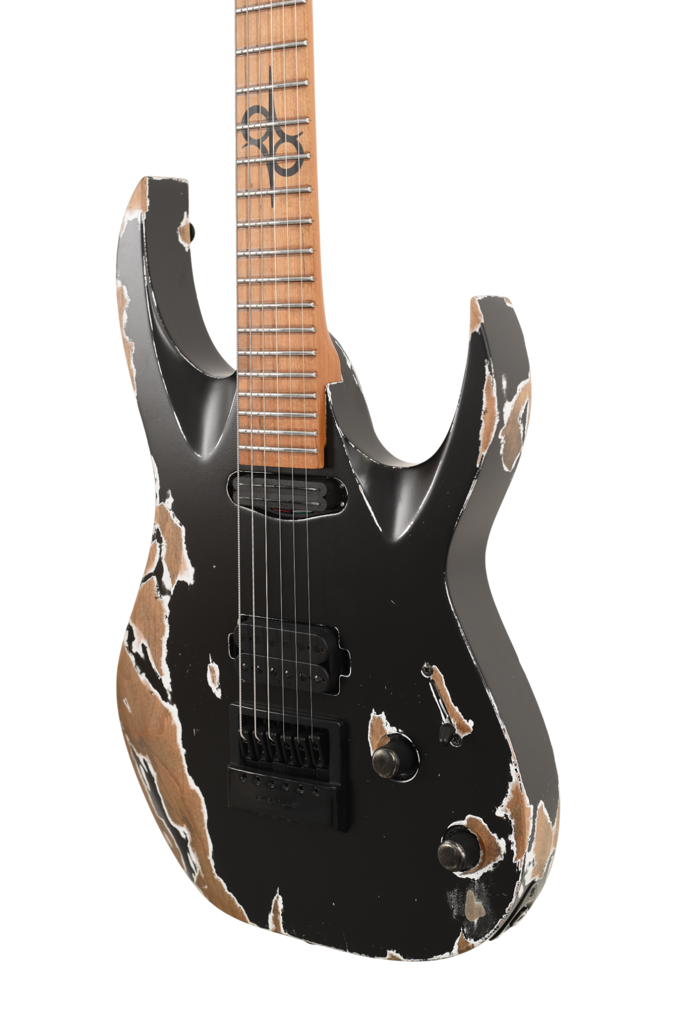 Then, Destruction mode!… Primer, Nitro-Lacquer, fire, flame and 1000 old school luthier tricks to create this worn and torn Relik workhorse. Once finish is complete, assembly begins with the neck fitted with *NEW VERSION* Evertune Bridge, Solar locking tuners, pickups, copper shielding, electronics wiring, strings strung up and final set-up by our experienced luthiers to be ready for any level of professional stage or studio. MCAS Custom fitted ABS molded flight ready case is included along with a Certificate of Authenticity hand signed by the Artisan Master that finished that finished your guitar.