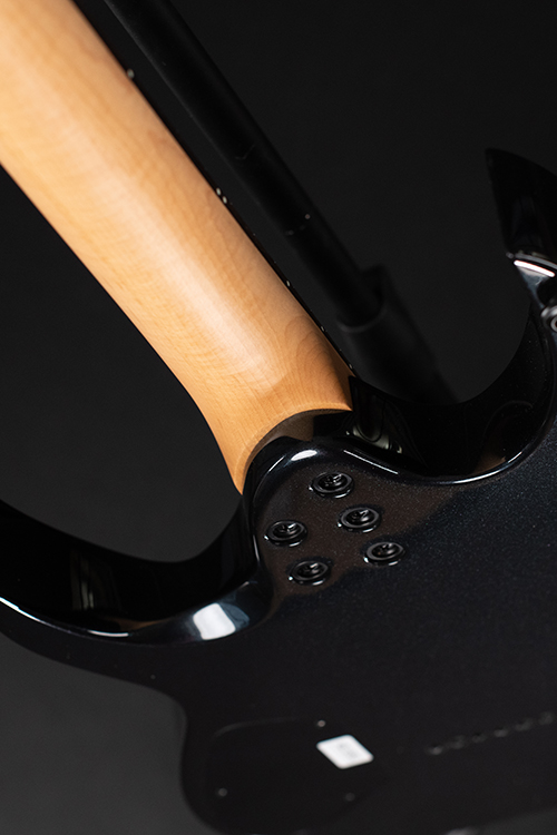 This Type AB2.6BSG six-string guitar boasts stealth looks, a distinctive cutaway scoop and a remarkable feature set, making it a precise, professional instrument suitable for both stage and studio work. It comes loaded with a reliable string-through-body hardtail bridge and a set of Solar Modern pickups provide classic Alnico tone. The Type AB2.6BSG is a bolt-on 25.5” scale instrument featuring a basswood body, comfortable maple neck and rosewood fingerboard with 24 super-jumbo frets. It also includes Solar locking tuners, Graphtech Nubone nut, black hardware, five-way blade pickup switching and full access neck. Available in black sparkle metallic gloss finish.