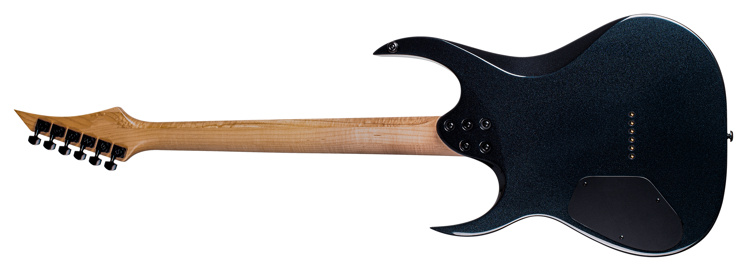 This Type AB2.6BSG six-string guitar boasts stealth looks, a distinctive cutaway scoop and a remarkable feature set, making it a precise, professional instrument suitable for both stage and studio work. It comes loaded with a reliable string-through-body hardtail bridge and a set of Solar Modern pickups provide classic Alnico tone. The Type AB2.6BSG is a bolt-on 25.5” scale instrument featuring a basswood body, comfortable maple neck and rosewood fingerboard with 24 super-jumbo frets. It also includes Solar locking tuners, Graphtech Nubone nut, black hardware, five-way blade pickup switching and full access neck. Available in black sparkle metallic gloss finish.