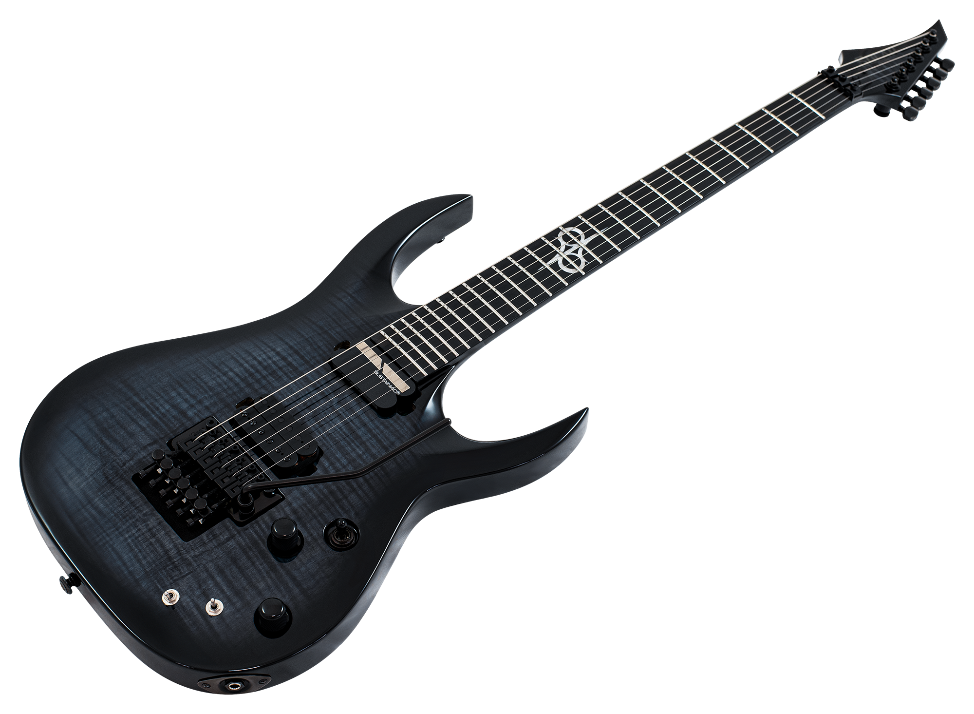 This Type AC1.6FRFBB Sustainiac+ carved top six-string guitar boasts stealth looks, a distinctive cutaway scoop and a remarkable feature set, making it the ultimate, precise and professional instrument suitable for both stage and studio work. This guitar features a “made in the USA” Hipshot bridge and is loaded with Duncan Solar pickups that provide a full spectrum of tonal options, from organic clean to heavily overdriven, all with fluid sustain and maximum clarity. The Type AC1.6FRFBB Sustainiac+ features a set-thru neck/body joint design with 25.5” scale, a swamp ash body, a fast, thin, comfortable maple neck, an ebony fingerboard with 24 super-jumbo stainless steel frets and Luminlay ‘glow in the dark’ side dots for easy stage use. Loaded with Solar 18:1 locking tuners, PPS nut, five-way blade pickup switching and full access neck. Available in flame black burst gloss finish.