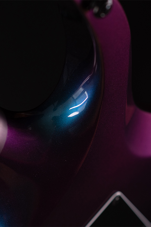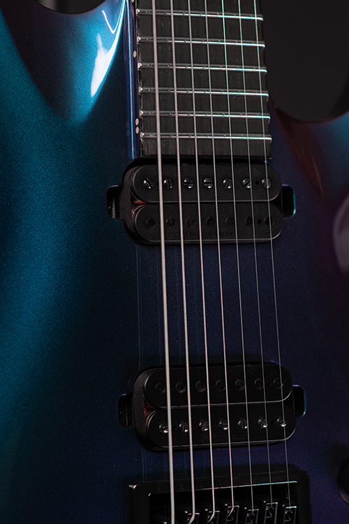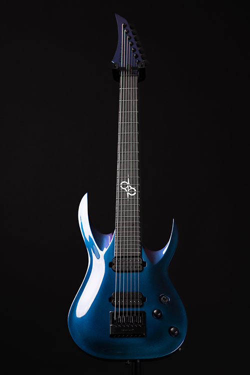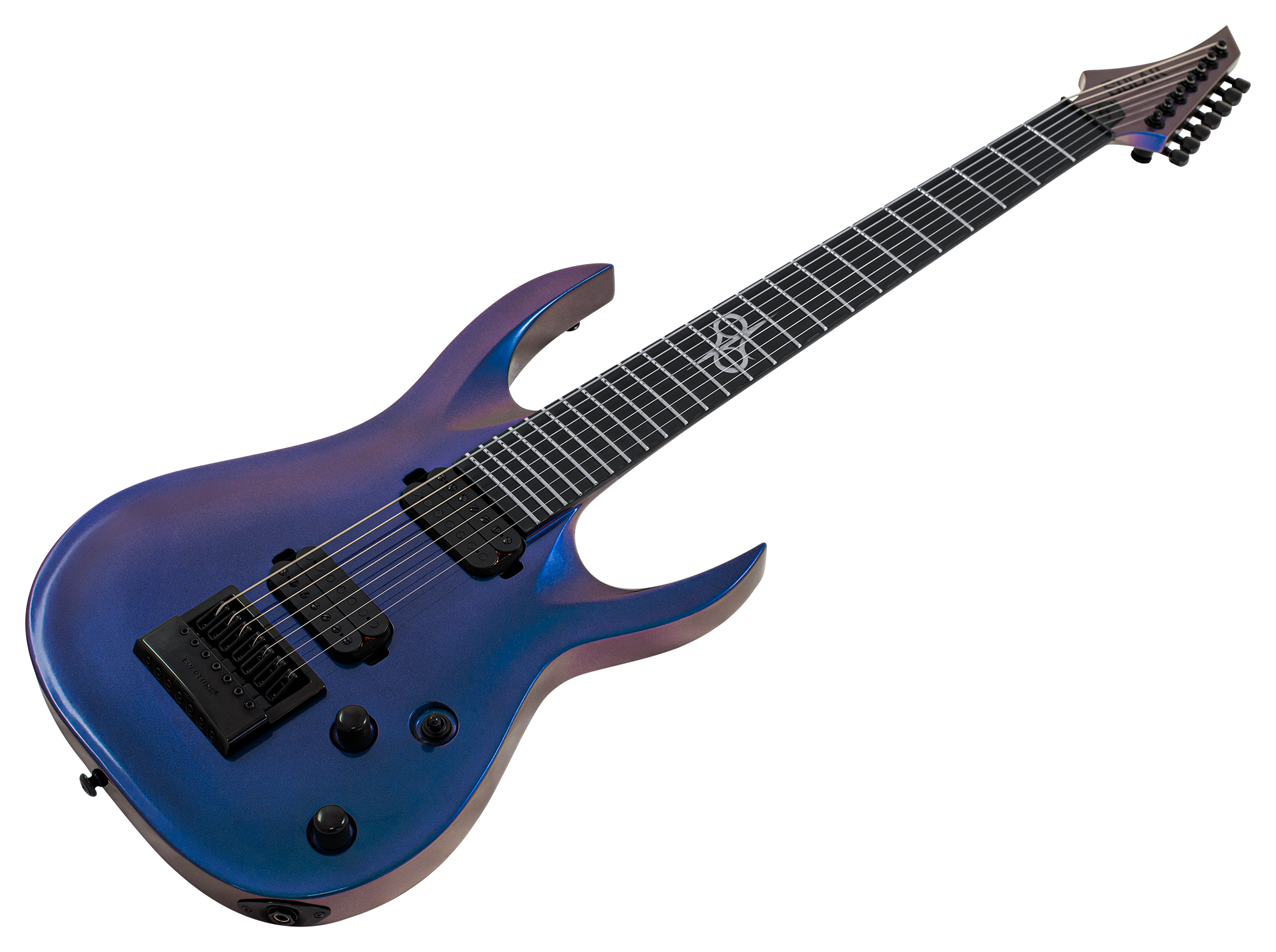 This Type AC1.7VC+ seven-string guitar boasts stealth looks, a distinctive cutaway scoop and a remarkable feature set, making it the ultimate, precise and professional instrument suitable for both stage and studio work. This guitar features the Evertune® constant-tension bridge—a reliable, fully-mechanical system that keeps the guitar in tune under any circumstances. It also features a set of newly designed Duncan Solar+ (Plus) high gain pickups, featuring Alnico VIII magnets, for maximum impact, grind and aggression.The Type AC1.7VC+ features a set-thru neck/body joint design with 26.5” scale, an alder body, a fast, thin, comfortable maple neck, an ebony fingerboard with 24 stainless steel super-jumbo frets and ‘glow in the dark’ side dots for easy stage use. Loaded with Solar 18:1 locking tuners, PPS nut, 3-way blade pickup switching and full access neck. Available in Vacillator gloss finish.