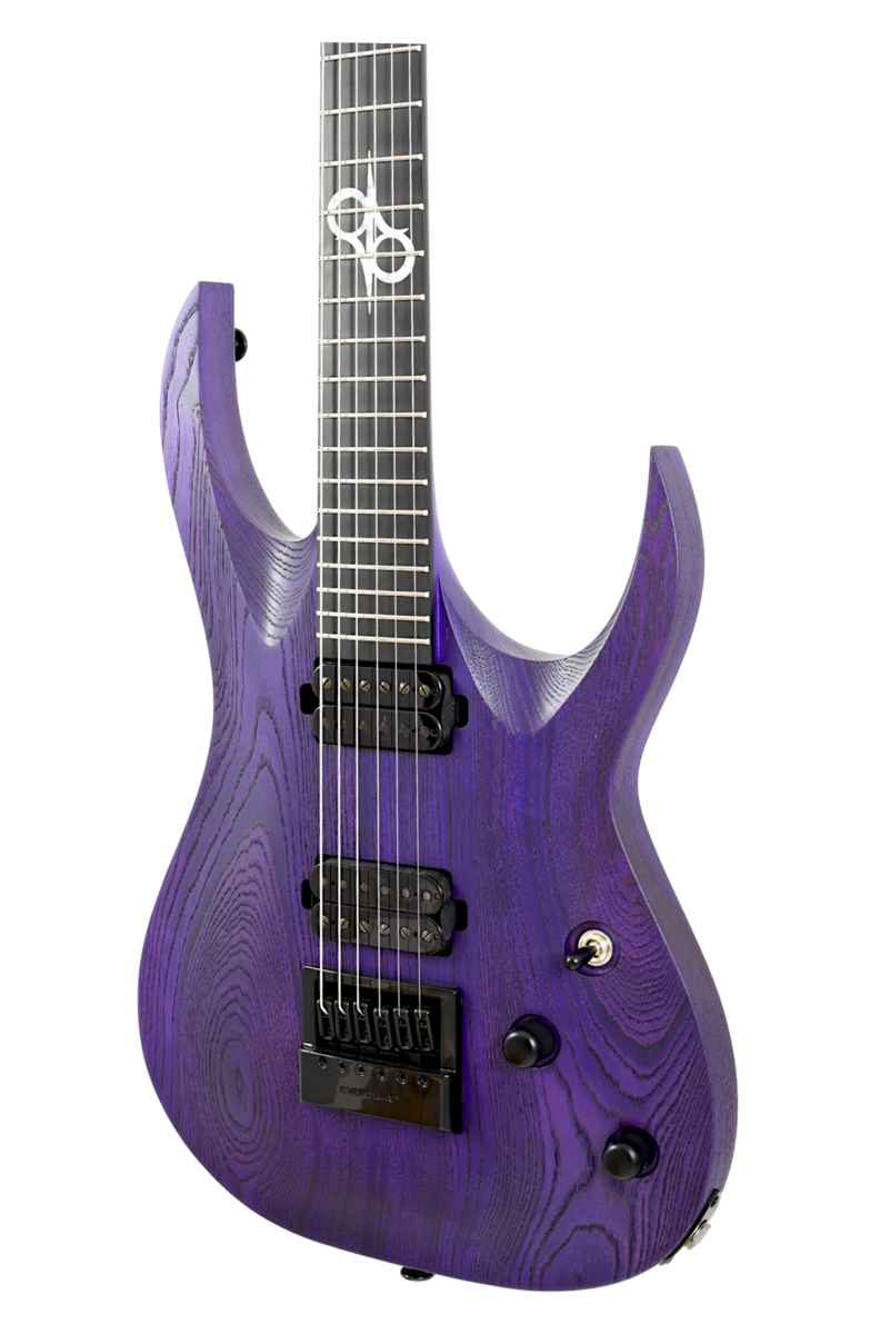 The new European Master Series AC6P RAW offers the best of what can be put into an electric guitar including stainless steel frets, Richlite fingerboard, black Tusq nut, Luminlay fret markers, Solar 12th fret logo inlay, Locking tuners and Evertune bridge. The custom wound SA56BEU and SA56NEU Solar Modern humbuckers were painstakingly voiced to perfection by Ola and the Solar product team. With a more modern and aggressive take on the classic Solar Alnico V, our energy was focused to ensure these new European made pickups would be the most perfectly matched set for these new instruments. Each pickup is installed directly into the wood with brass countersinks to create a harmonious tonal marriage between body resonance and electrical output. Switchcraft toggle switch, CTS potentiometers with a Push-Pull for coil splits and PureTone output jack complete the electronics package. Each guitar ships in a custom MCAS flight-ready molded case with certificate of authenticity personally signed by Ola Englund. Purple Raw Swamp Ash open pore with exposed grain finish.