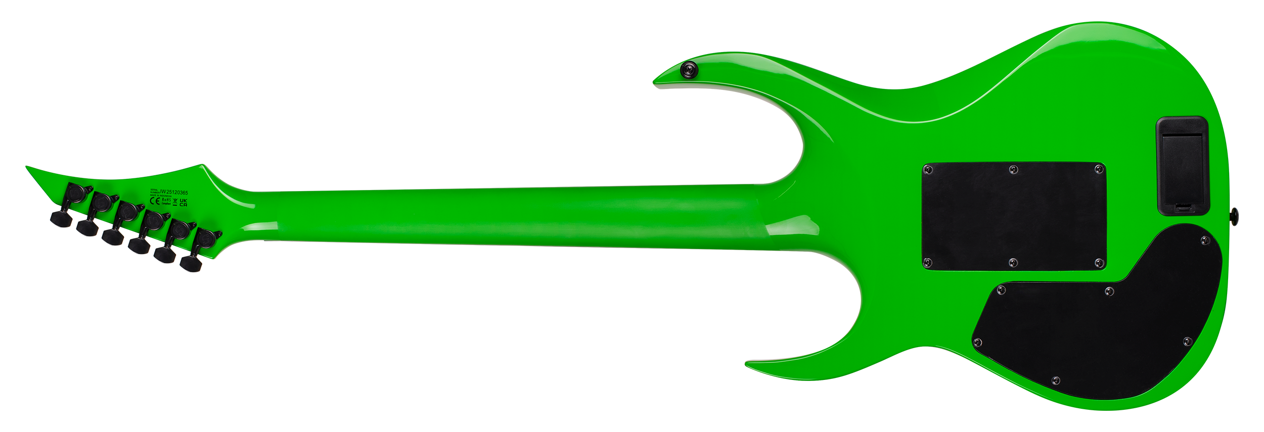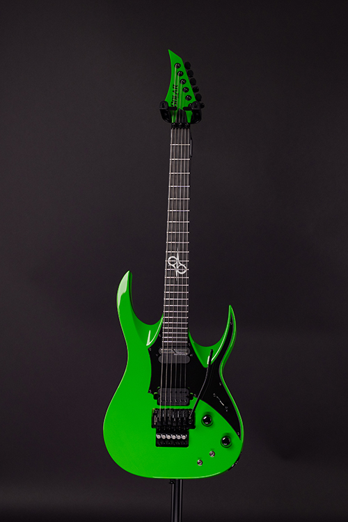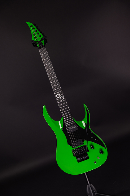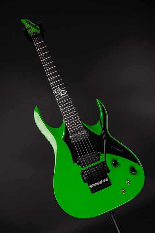 This Type AP1.6FRGNG Sustainiac+ six-string guitar boasts stealth looks, a distinctive cutaway scoop and a remarkable feature set, making it the ultimate, precise and professional instrument suitable for both stage and studio work. The reliable Gotoh 1996T, made of hardened steel combined with an oversized block, offers increased sustain and resonance while all tremolo springs are mechanically muted. It also features a Duncan Solar+ Alnico VIII humbucker in the bridge , and a Sustainiac Stealth Pro pickup in the neck, which works both as a single coil pickup and also houses the sustain device. The Type AP1.6FRGNG Sustainiac+ features a set-thru neck/body joint design with 25.5” scale, an alder body , a fast, thin, comfortable maple neck, an ebony fingerboard with 24 super-jumbo stainless steel frets and Luminlay ‘glow in the dark’ side dots for easy stage use. Loaded with Solar 18:1 locking tuners, locking nut, three-way blade pickup switching and full access neck. Available in green neon gloss finish.
