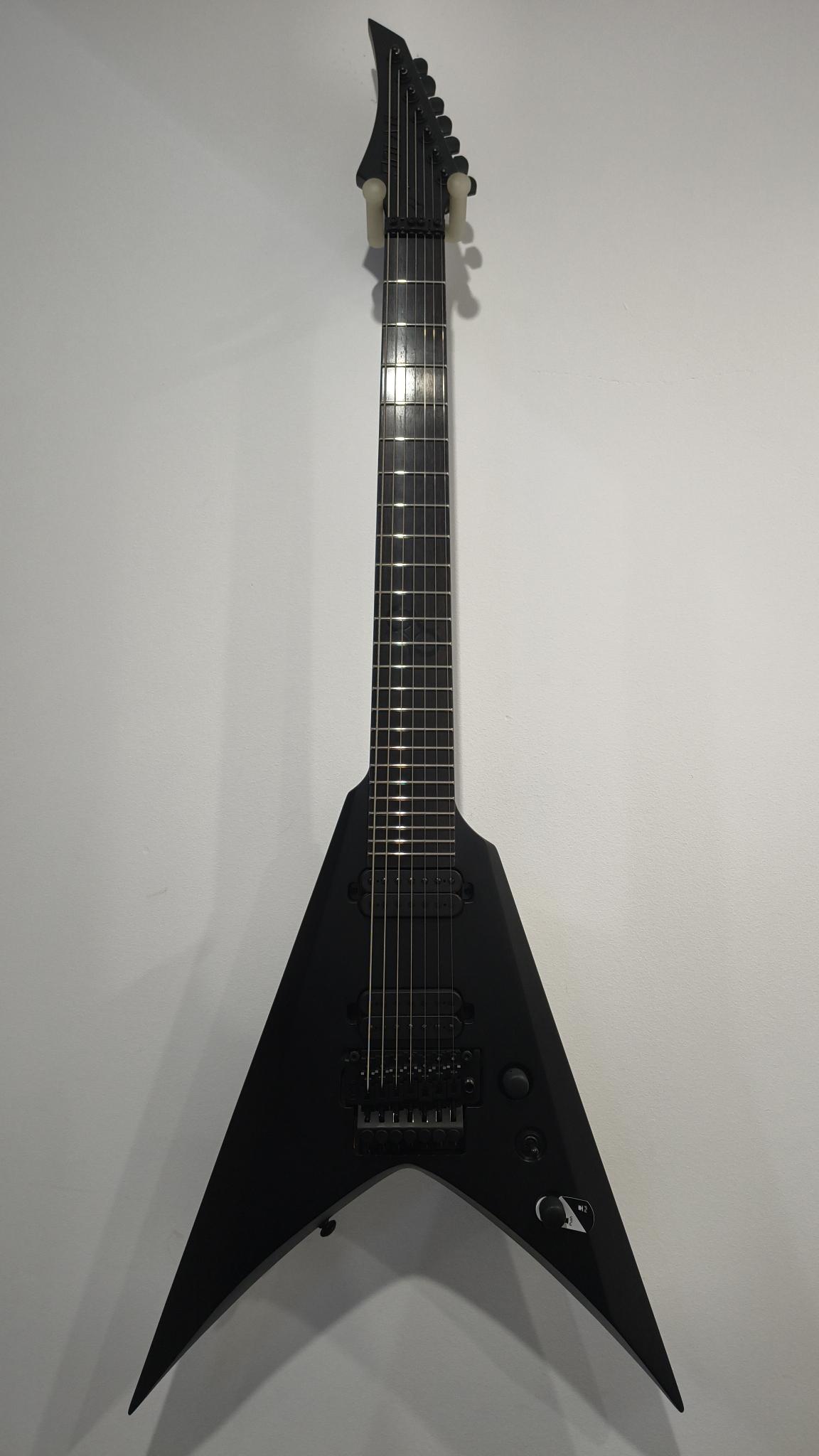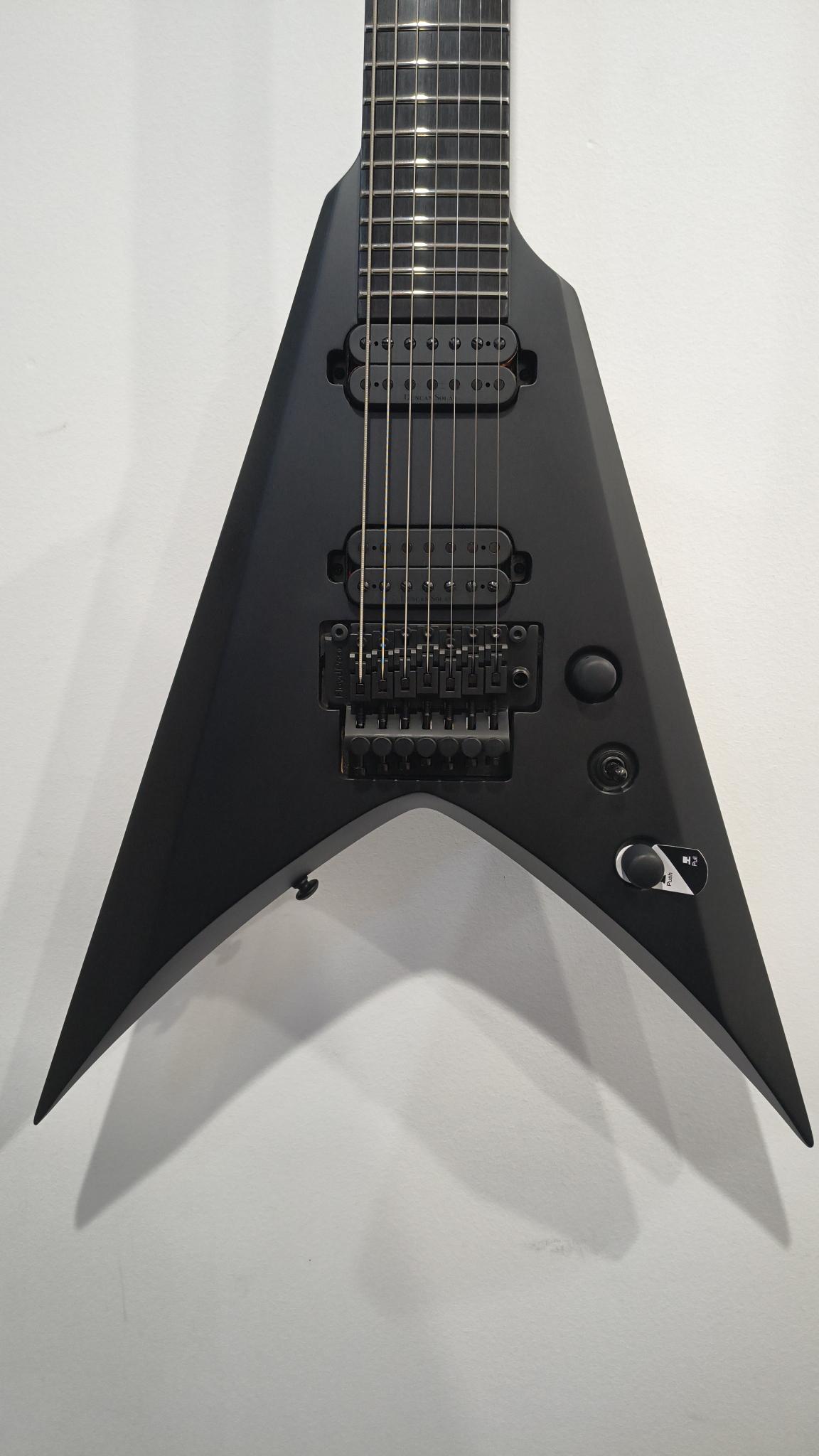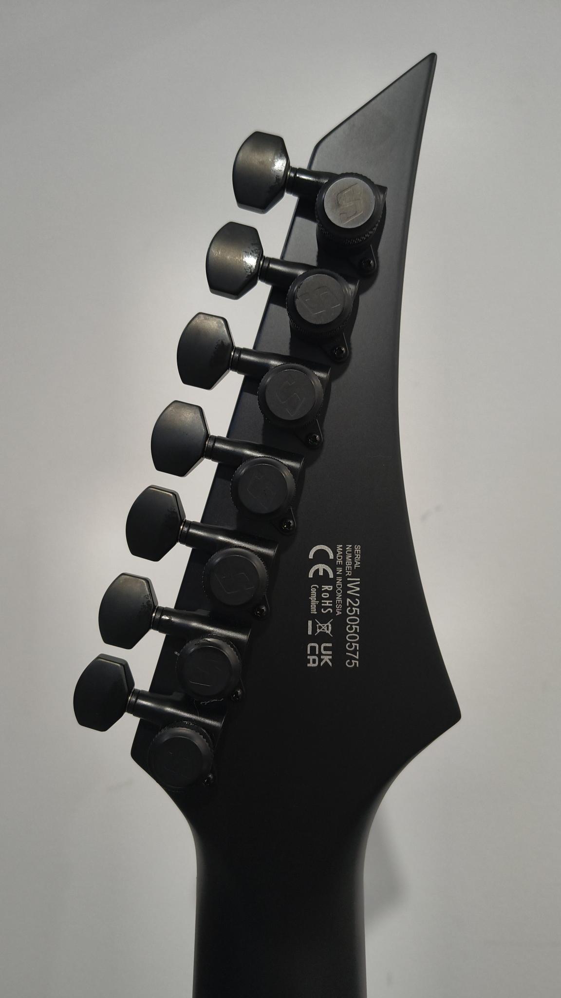 This Type V1.7FR SVART+ seven-string guitar will set you apart from everyone else. With its distinctive, stealth looks and feature set, this guitar is a precise, professional instrument suitable for both stage and studio work. The reliable Floyd Rose 1000, made of hardened steel combined with an oversized block, offers increased sustain and resonance while all tremolo springs are mechanically muted. It also features a set of newly designed Duncan Solar+ (Plus) high gain pickups, featuring Alnico VIII magnets, for maximum impact, grind and aggression.The Type V1.7FR SVART+ features a set-thru neck/body joint design with 25.5” scale, alder body, a fast, thin, comfortable maple neck, an ebony fingerboard with 24 super-jumbo stainless steel frets and Luminlay ‘glow in the dark’ side dots for stage use. Loaded with Solar 18:1 locking tuners, locking nut, 3-way toggle pickup switching , volume and tone with push-pull for coil cut, and full access neck. Available in carbon black matte finish, it also includes a Solar Type V deluxe gig bag.