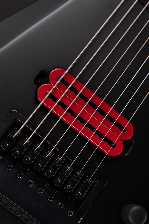 This Type V1.81A Assassin eight-string guitar will set you apart from everyone else. With its distinctive, stealth looks and feature set, this guitar is a precise, professional instrument suitable for both stage and studio work. This guitar features the Evertune® constant-tension bridge—a reliable, fully-mechanical system that keeps the guitar in tune under any circumstances. It’s loaded with a single Fishman Fluence Open Core Modern ceramic active humbucker pickup, revealing pure, uncorrupted and musical tone. The Type V1.81A Assassin features a set-thru neck/body joint design with 27” scale, an alder body, a fast, thin, comfortable maple neck, an ebony fingerboard with 24 stainless steel super-jumbo frets and ‘glow in the dark’ side dots for easy stage use. This well balanced 8-string guitar is loaded with Solar 18:1 locking tuners, Graphtech nut, single volume with push-pull and full access neck. Logo is engraved into the headstock with carbon black matte finish. Also includes a Solar Type V deluxe gig bag. (NOTE: THIS GUITAR DOES NOT FIT THE SOLAR MCV CASE, 9V battery not included)