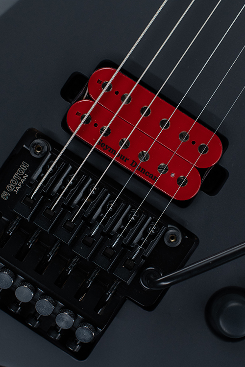 This Type VA1.61FR Assassin six-string guitar will set you apart from everyone else. With its distinctive, stealth looks and feature set, this guitar is a precise, professional instrument suitable for both stage and studio work. The superior and very reliable Gotoh GE1996T tremolo bridge with 12 mm thick / 33 mm long brass block offers increased sustain and resonance while all tremolo springs are mechanically muted. It also features a single Seymour Duncan USA Nazgul trembucker pickup for a gnarly yet cutting and precise tone. The Type VA1.61FR Assassin features a set-thru neck/body joint design with 25.5” scale, alder body, a fast, thin, comfortable maple neck, an ebony fingerboard with 27 super-jumbo stainless steel frets and Luminlay ‘glow in the dark’ side dots for stage use. Loaded with Solar 18:1 locking tuners, 3-way toggle pickup switching and full access neck. Available in carbon black matte with black hardware, it also includes a Solar Type VA deluxe hardcase.