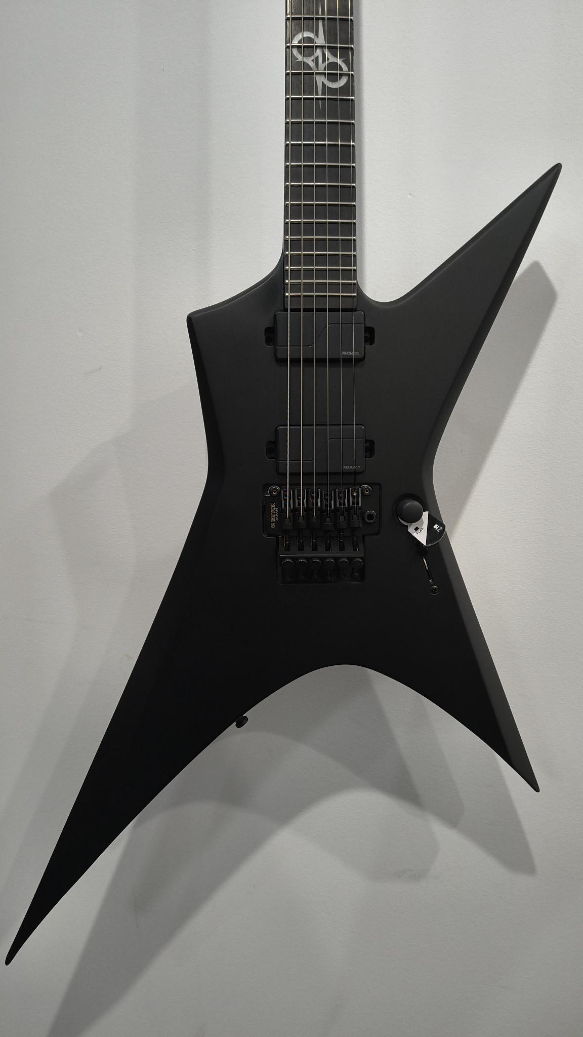 This Type X1.6 Coroner six-string guitar boasts stealth looks, a distinctive cutaway scoop and a remarkable feature set, making it the ultimate, precise and professional instrument of choice for Tommy Vetterli’s stage and studio work. The superior and very reliable Gotoh GE1996T tremolo bridge with 12 mm thick / 33 mm long brass block offers increased sustain and resonance while all tremolo springs are mechanically muted. It also features a pair of new Fishman 3-Voice Fluence Modern active humbucker pickups revealing pure, uncorrupted and musical tone. The Type X1.6 Coroner features a set-thru full access neck/body joint design with 25.5” scale, an alder body, a fast, thin, comfortable maple neck, an ebony fingerboard with 24 super-jumbo stainless steel frets and Luminlay ‘glow in the dark’ side dots for easy stage use. Loaded with Solar 18:1 locking tuners, locking nut, 1 Volume with push/pull for voice change and 5 way blade switch. it is available in carbon black matte finish with black hardware, it also includes a Solar custom fitted wooden hardcase. *This instrument is best suited to be plugged in with a Right-Angle Jack.