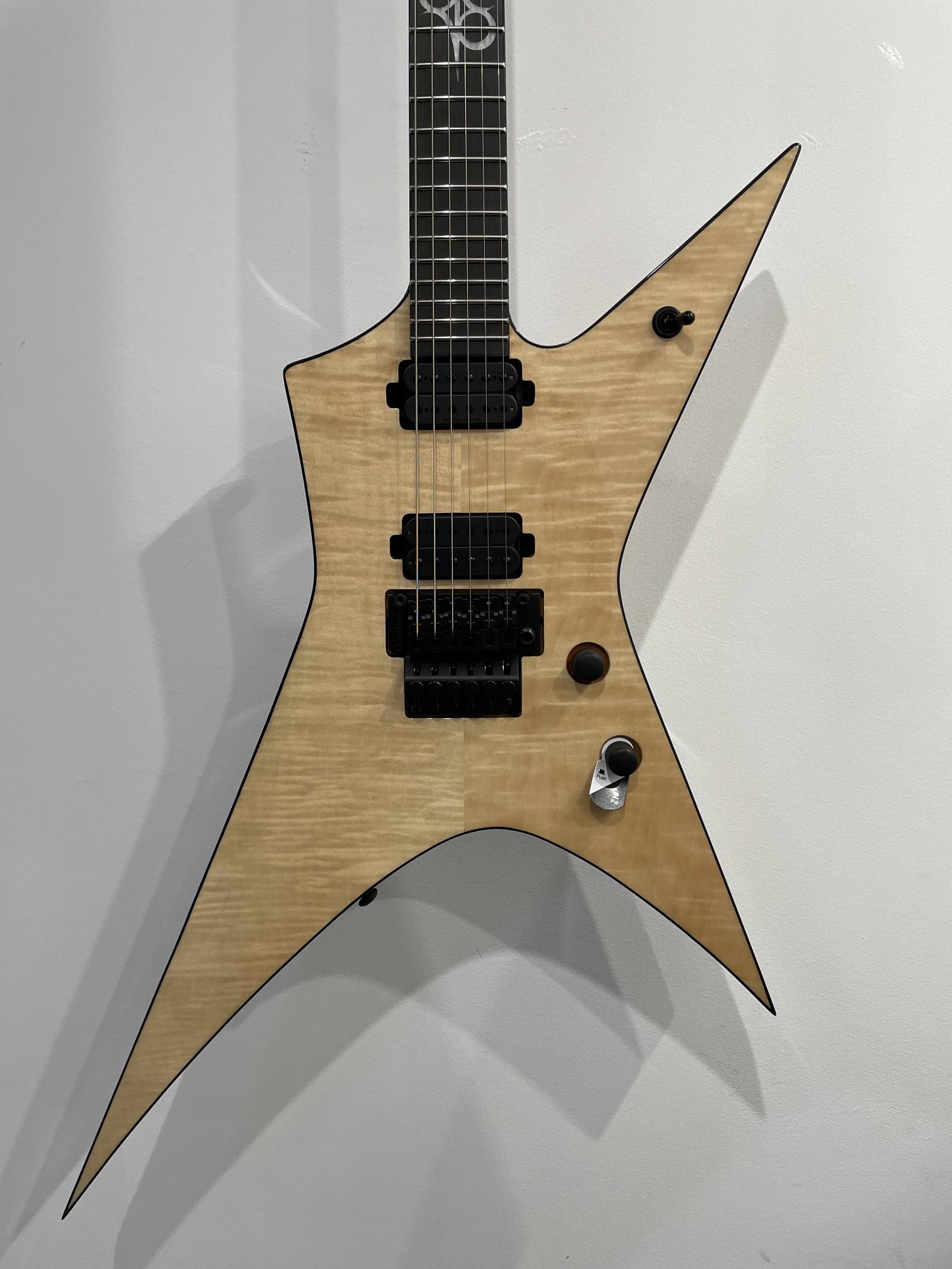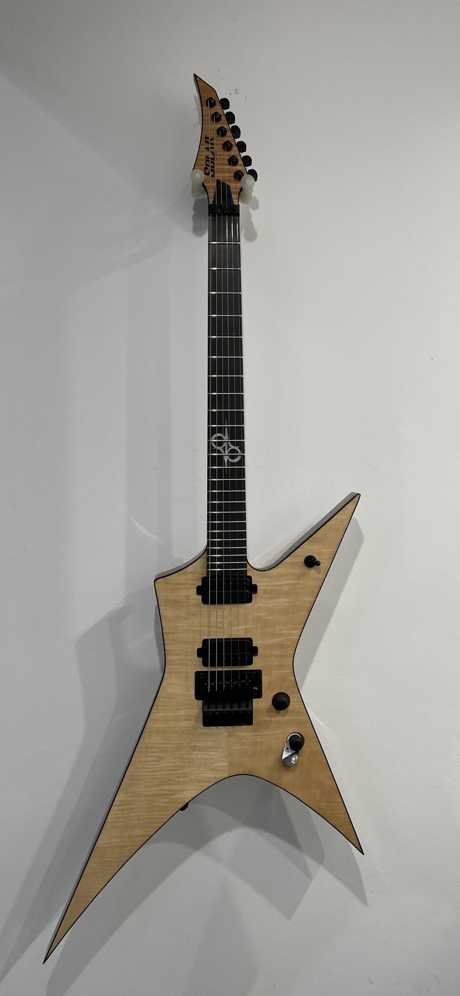 This Type XF1.6FRFN flat top, six-string guitar will set you apart from everyone else. With its distinctive, stealth looks and feature set, this guitar is a precise, professional instrument suitable for both stage and studio work. Loaded with a Floyd Rose 1000 vibrato with 34 mm block, it offers increased sustain and resonance while all tremolo springs are mechanically muted. It also features Duncan Solar pickups that provide a full spectrum of tonal options, from organic clean to heavily overdriven, all with fluid sustain and maximum clarity. The Type XF1.6FRFN guitar features a set-thru neck/body joint design with 25,5” scale, a mahogany body, a fast, thin, comfortable mahogany neck, and an ebony fingerboard with 24 super-jumbo stainless steel frets. It also includes Solar 18:1 locking tuners, locking nut, black hardware, 3-way toggle pickup with one volume and one tone with push-pull for coil cut, and a full access neck. This guitar is available in Natural Gloss finish. Includes a Solar custom fitted wooden hardcase. *This instrument is best suited to be plugged in with a Right-Angle Jack.
