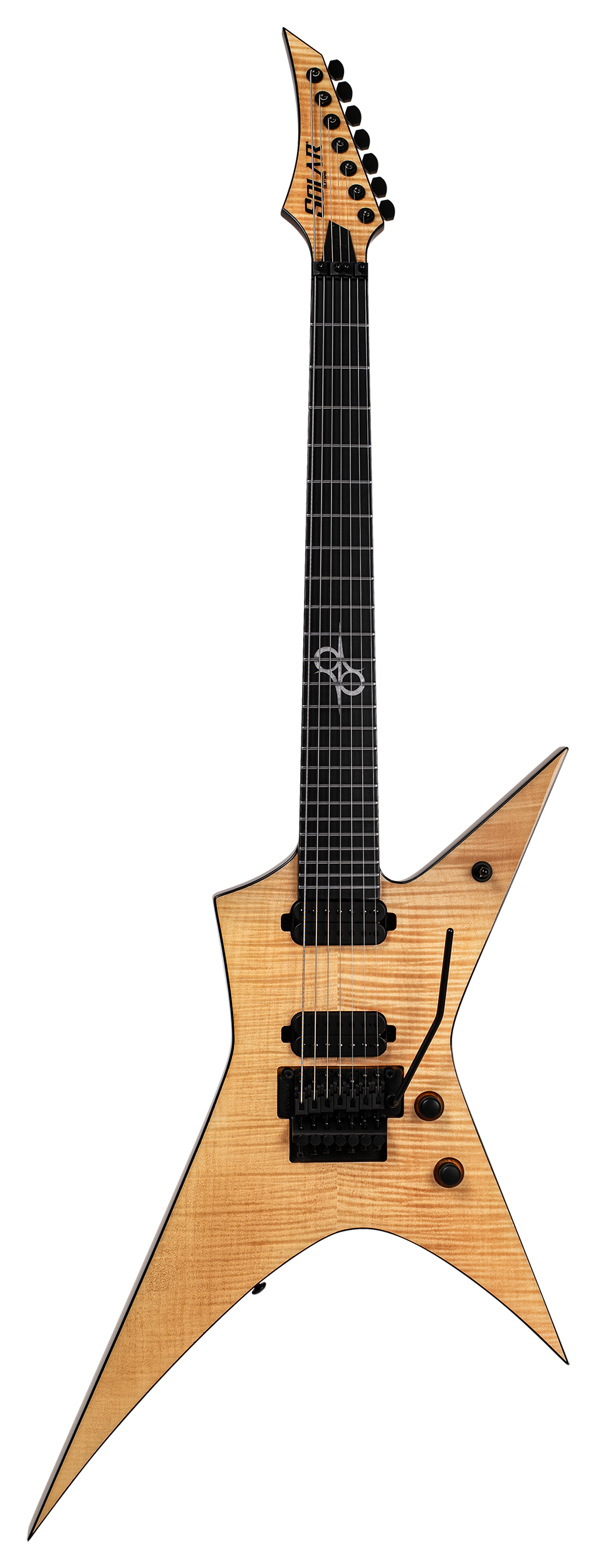 This Type XF1.7FRFN flat top, seven string guitar will set you apart from everyone else. With its distinctive, stealth looks and feature set, this guitar is a precise, professional instrument suitable for both stage and studio work. The reliable Floyd Rose 1000, made of hardened steel combined with an oversized block, offers increased sustain and resonance while all tremolo springs are mechanically muted.It also features Duncan Solar pickups that provide a full spectrum of tonal options, from organic clean to heavily overdriven, all with fluid sustain and maximum clarity. The Type XF1.7FRFN features a set-thru neck/body joint design with 26,5” scale, mahogany body with a back belly cut, a fast, thin, comfortable mahogany neck, an ebony fingerboard with 24 super-jumbo stainless steel frets and Luminlay ‘glow in the dark’ side dots for stage use. Loaded with Solar 18:1 locking tuners, PPS nut, 3-way toggle pickup switching with push-pull for tap coil, full access neck. Available in natural gloss with black hardware, it also includes a Solar custom fitted wooden hardcase. *This instrument is best suited to be plugged in with a Right-Angle Jack.